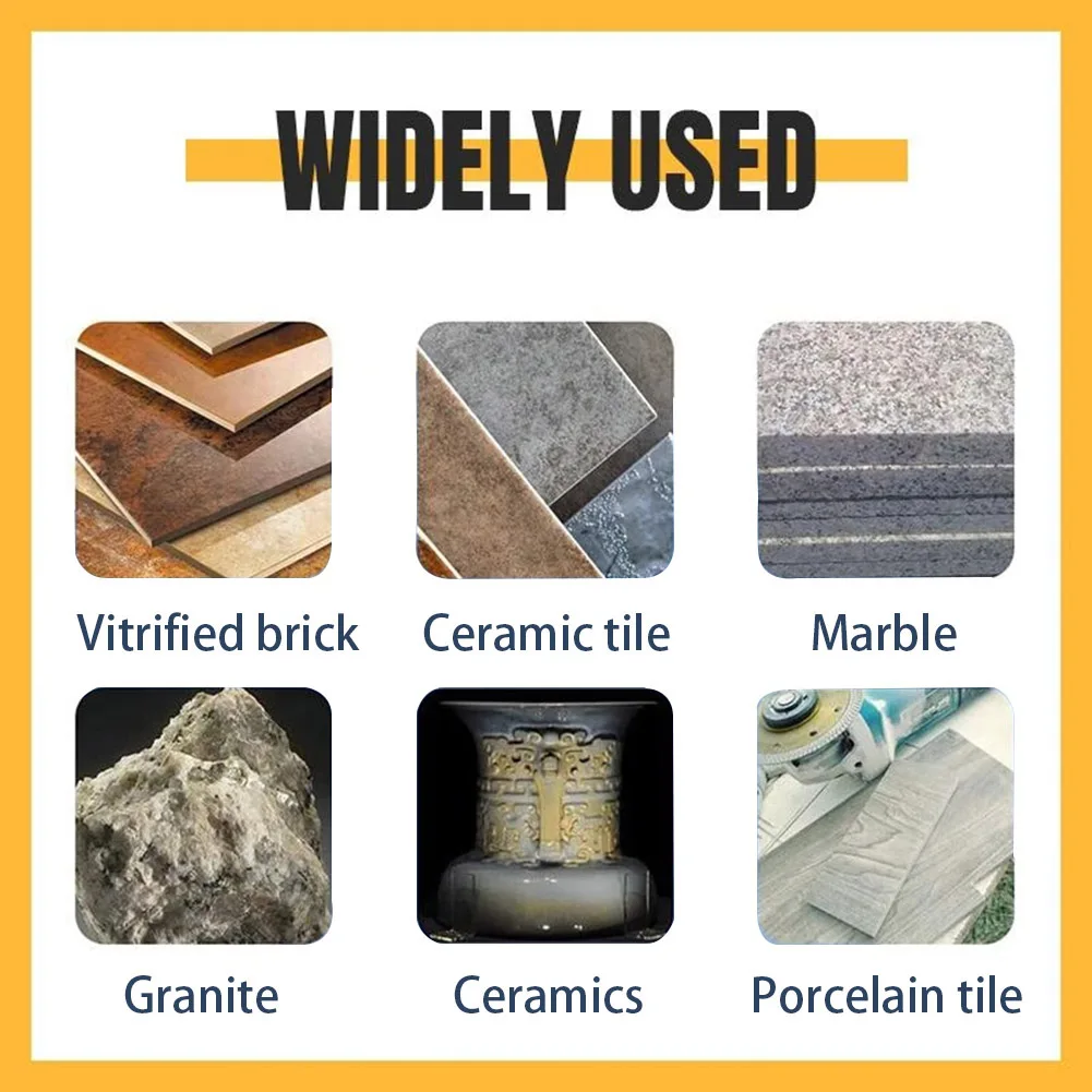 Широко используется для резки фарфоровой плитки, керамической плитки, обработанного камня или для строительства.