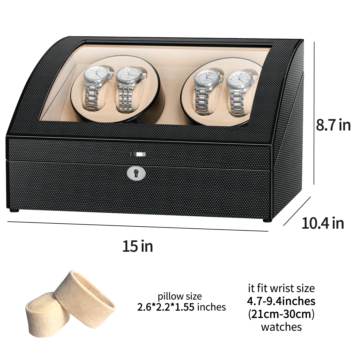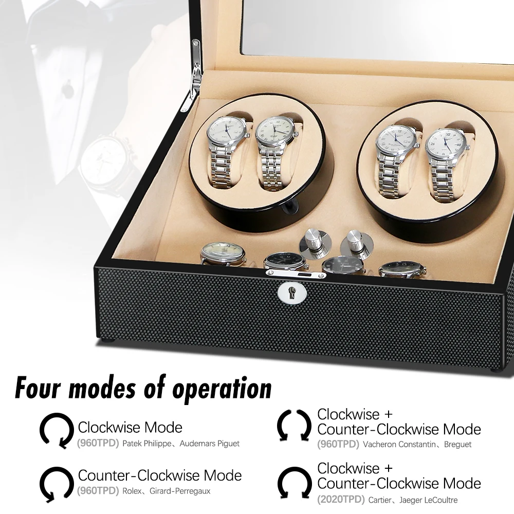 В этой элегантной вращающейся шейкерной коробке было 4 winders и 6 витрины часов. Вы можете хранить 6 роскошных часов одновременно с намоткой 4 автоматических часов. Достаточно сэкономить ваше время и пространство в одном автоматическом намотке часов чехол. Эластичная хлопковая подушка была упакована в высококачественную великолепную деревянную коробку с корпусом для часов, приятный внешний вид с устойчивой к царапинам поверхностью, удерживайте намотку ваших часов в течение длительного времени