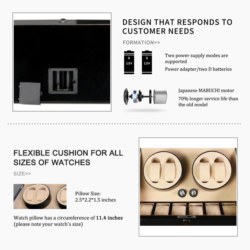 Чехол-коробка для часов с двойным источником питания: есть 2 варианта питания для намотки роскошных часов. Питание от адаптера или 2 * D батарей независимо. (батареи не входят в комплект)