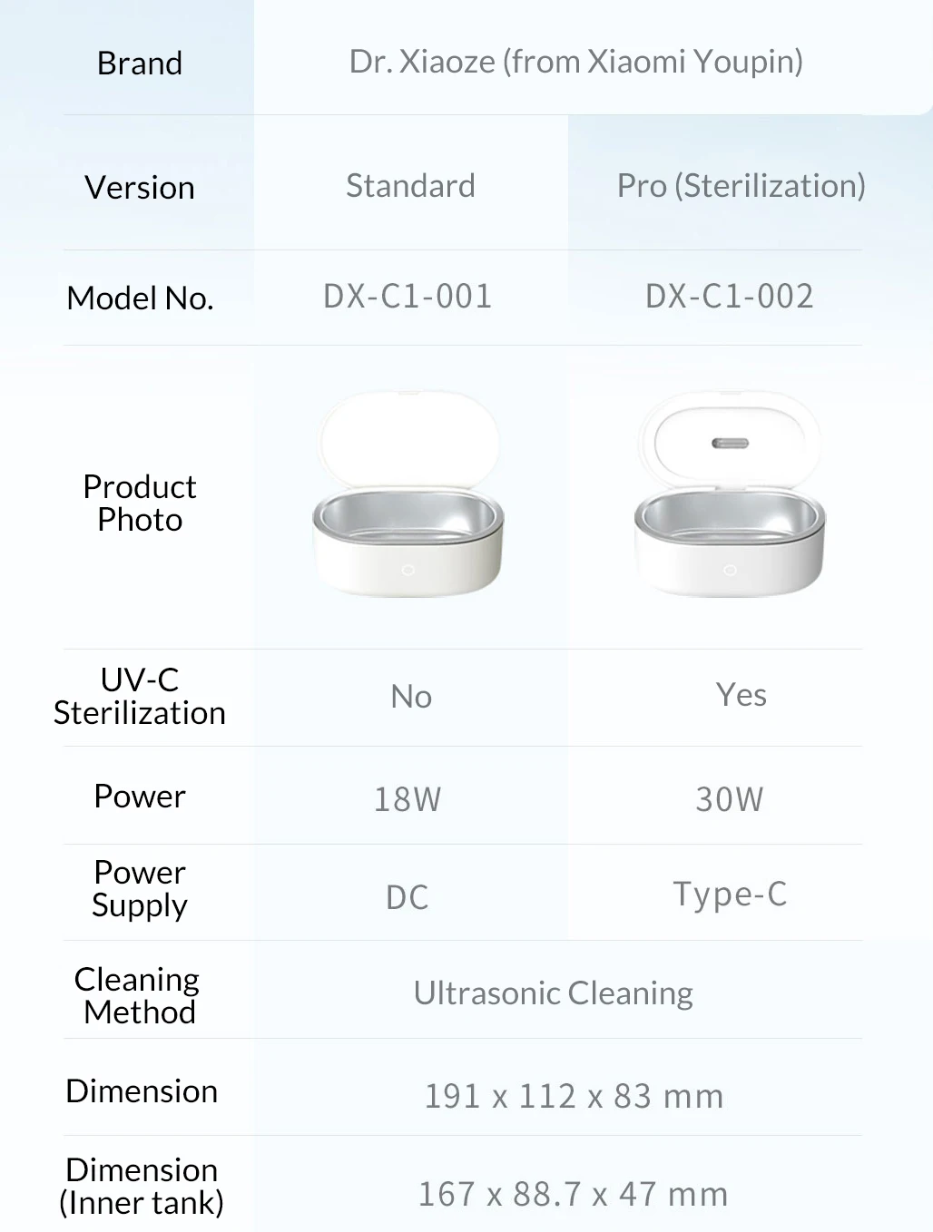 Аппарат для ультразвуковой очистки XIAOZE Doctor Основные характеристики: * Высокочастотная очистка 45000 Гц, низкий уровень шума. * Начните с одного клика и запустите автоматически. * Маленький размер и большая емкость. * Используется вкладыш из нержавеющей стали 304, эффективно предотвращающий коррозию. * Интегрированная конструкция, водонепроницаемая и Антибактериальная. * Безопасное низкое напряжение. Различия между стандартной и профессиональной версиями