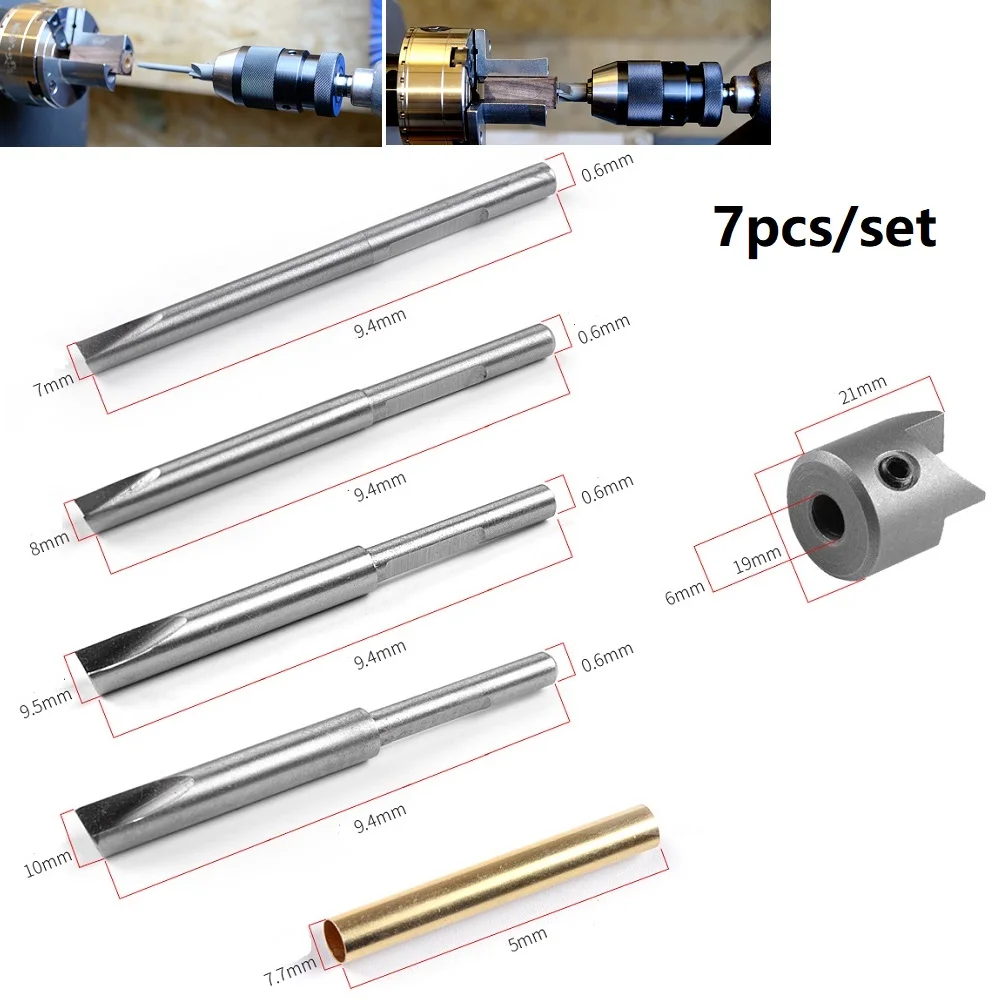 Четыре шанка с медной трубкой диаметром 7 мм снаружи, которые могут быть нарукавниками на хвостовике, чтобы предотвратить рассеивание при стирке отверстий.
