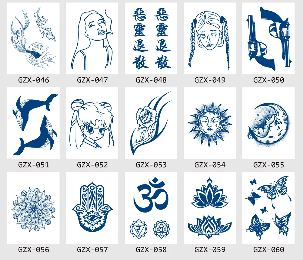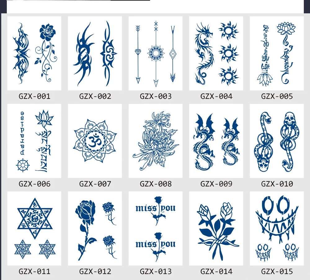 Juice Temporary Tattoos Stickers Designs Tattoo Edges Waterproof Blue Flash Art Fake Sleeves Lasting Cheap Body Tattoo For Women