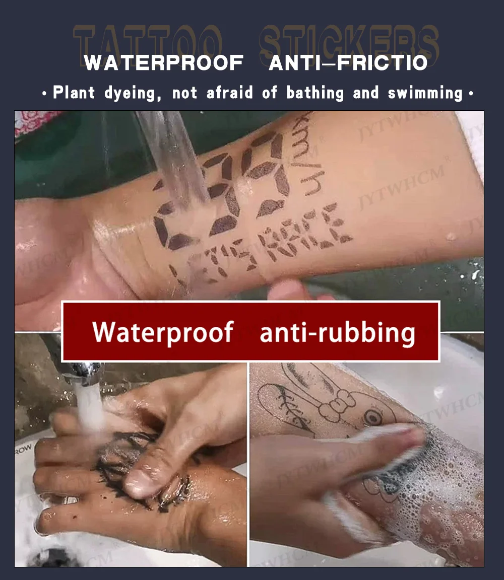 2.Printed designed patterns, color bright and looks like real tattoo.
