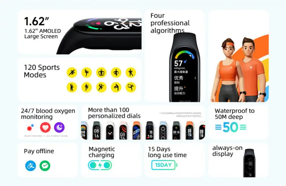 Смарт-браслет Xiaomi Mi Band 7 6 цветов 1,62 "AMOLED экран Miband 7 фитнес-трекер с кислородом крови Bluetooth водонепроницаемый смарт-браслет