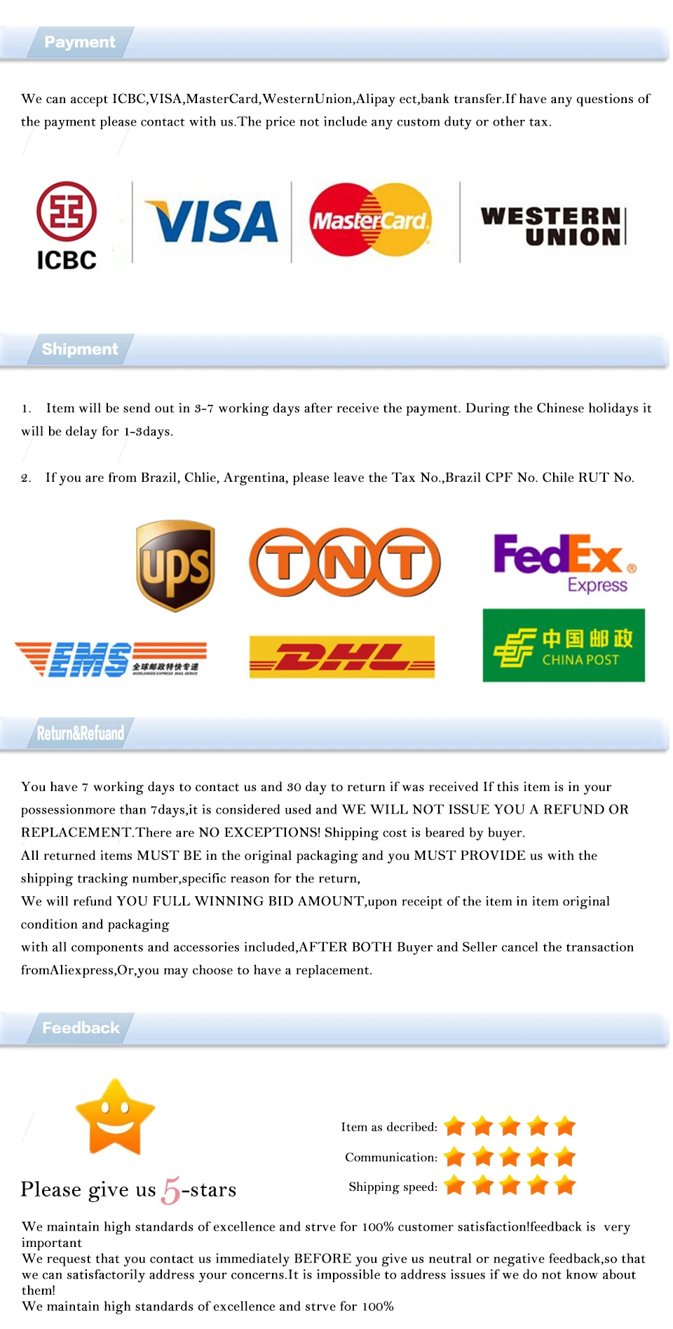 1. 100% новый, никогда не монтируется, высокое качество