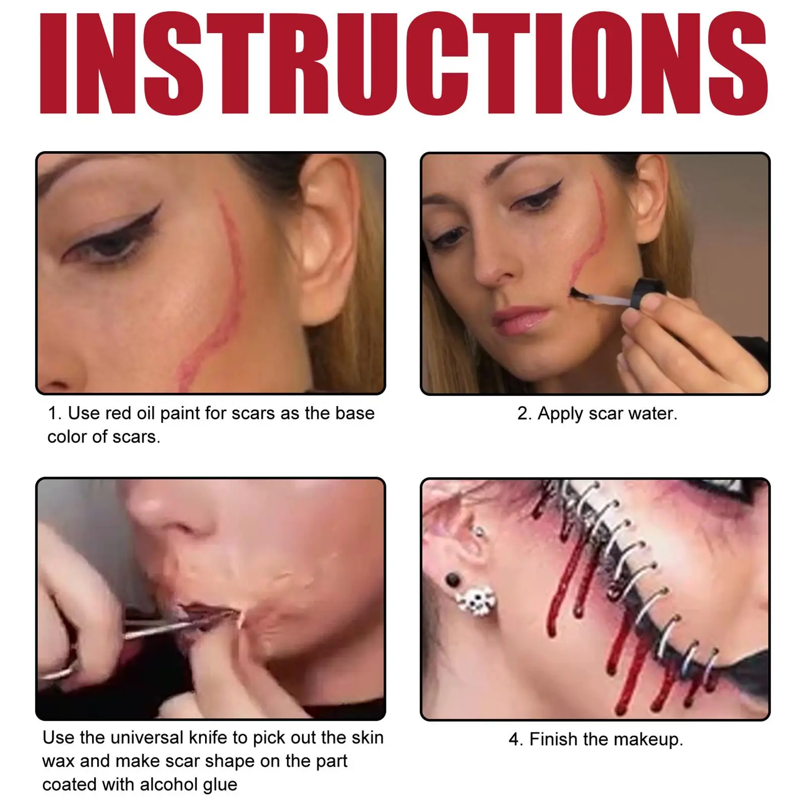 1. Эффект макияжа: вы можете использовать наш набор воска для макияжа для достижения реалистичных эффектов. Вы можете создавать хорошие результаты, такие как ожоги, большие раны, порезы, шрамы, укусы и т. д. легко создавать порезы и деформации или другие формы, такие как строительство носа клоуна.