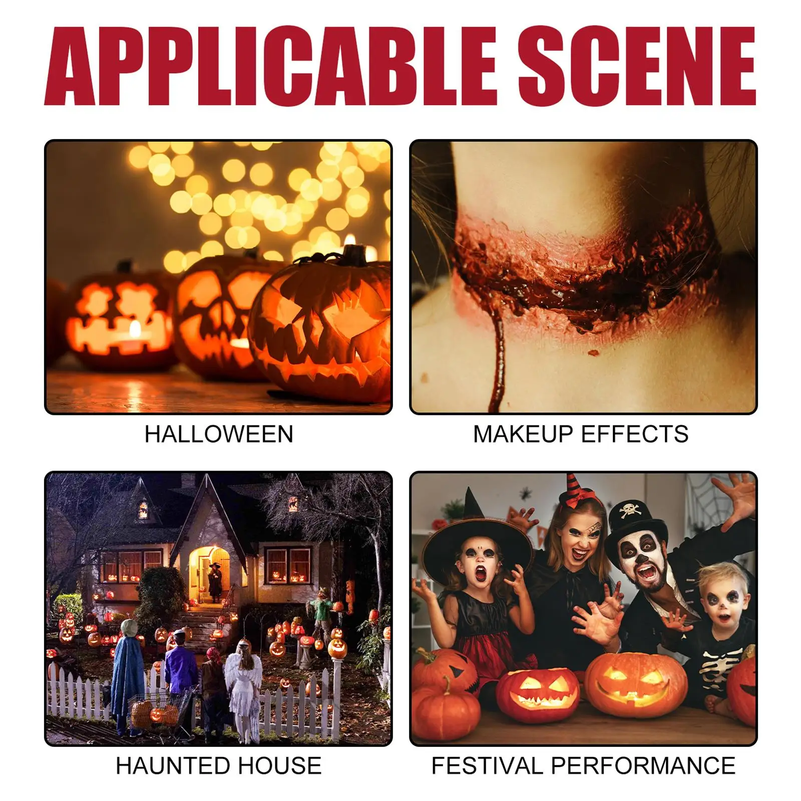 3. Многофункциональный: лучше всего подходит для сумасшедших нарядов, подходит для веселых тематических вечеринок, костюмов, апрельских дураков, Хэллоуина, карнавала, косплея, дома с привидениями, сцены кладбища, реквизита, фестиваля или спецэффектов для макияжа. Незаменимый инструмент для макияжа на Хэллоуин, чтобы создать хорошее праздничное настроение.