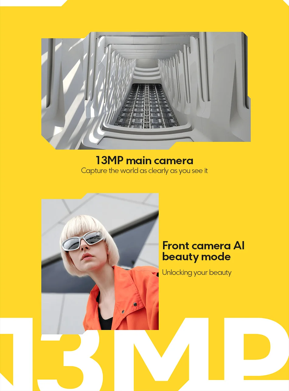 Задняя 13MP двойная система камеры поставляется с мощными capabitions и превосходным Al алгоритм оптимизации изображения, рендеринг изображений более изысканно.