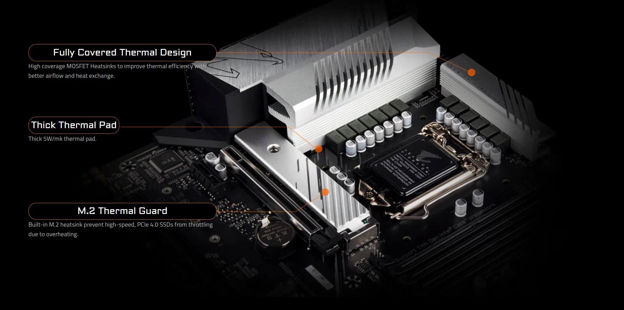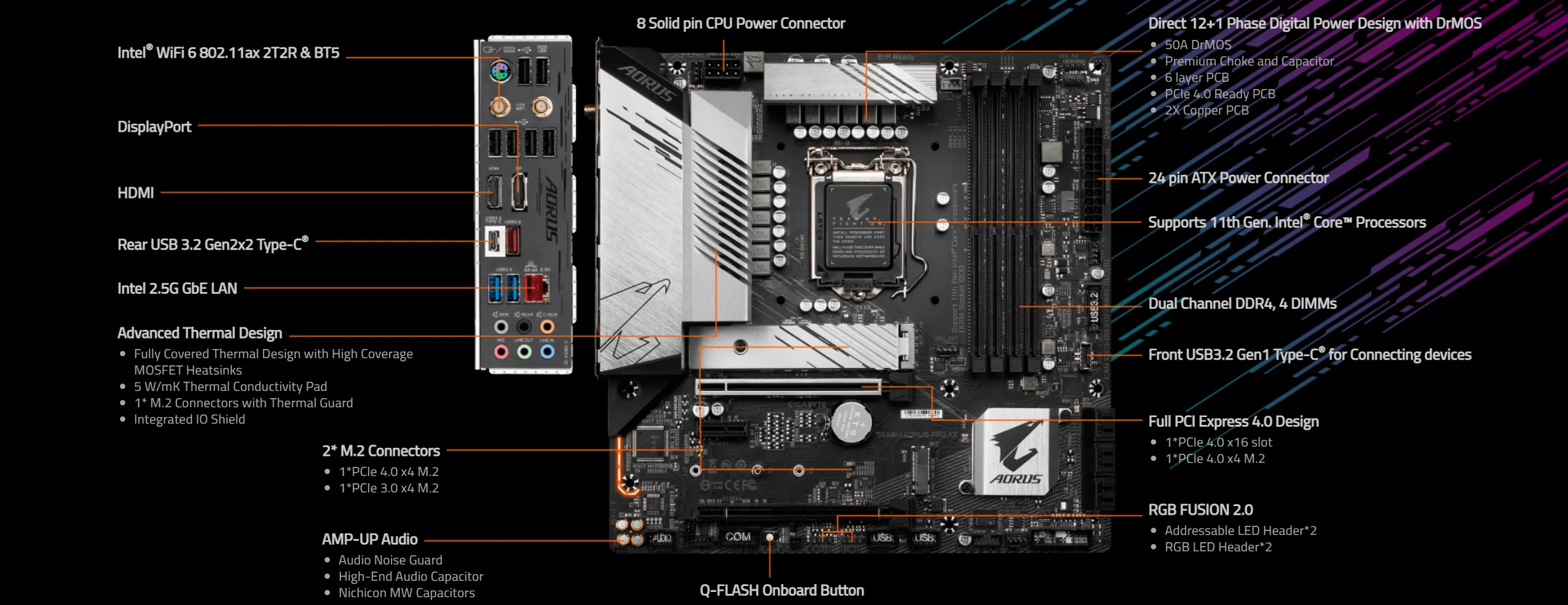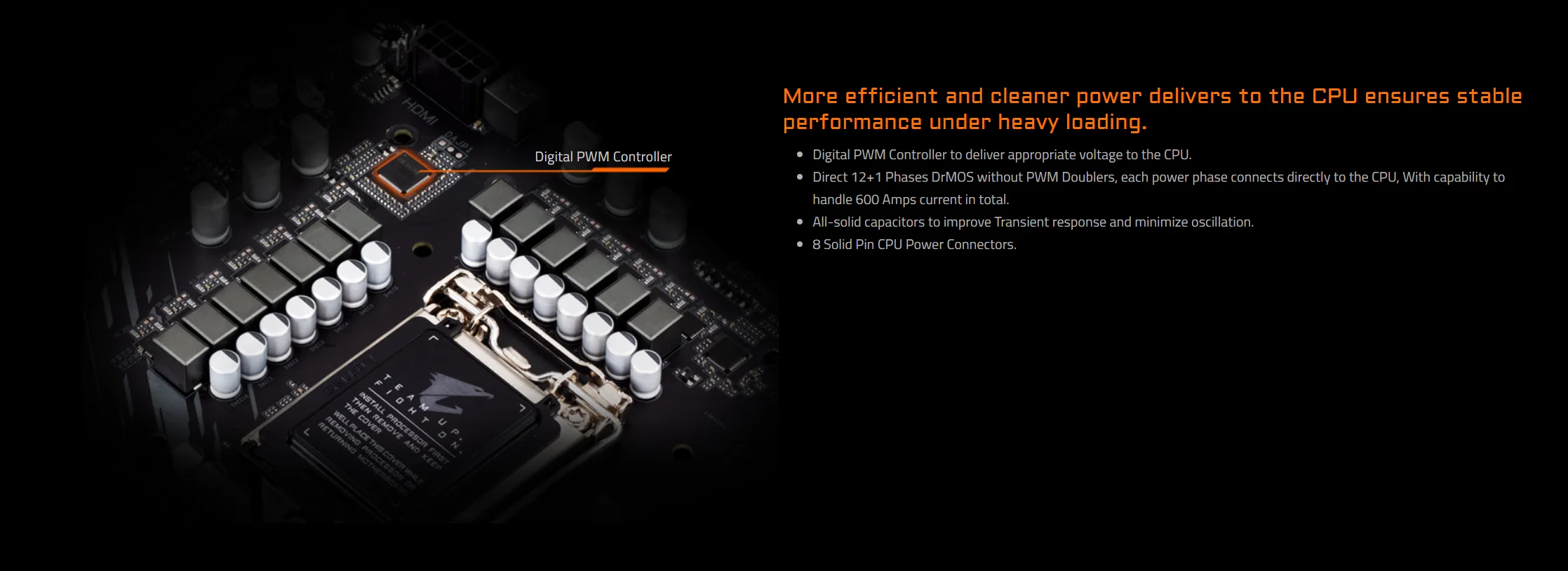 * Интеллектуальная технология fan 6, интегрирует многоточечную функцию измерения температуры и принимает Гибридный разъем вентилятора и поддерживает технологию fan STOP