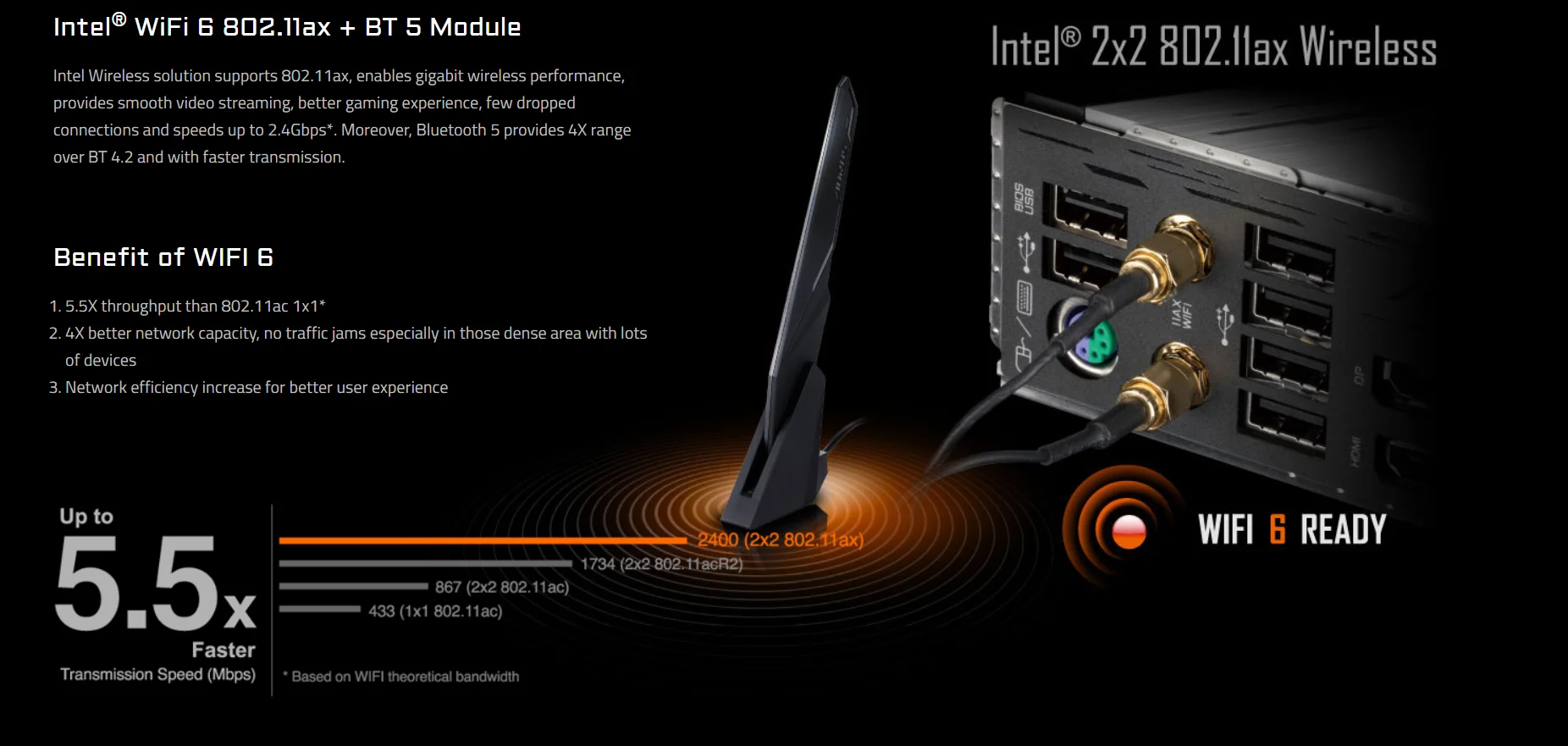 * Встроенная Intel®Беспроводная сетевая карта WIFI 6 с двухдиапазонной антенной усиления