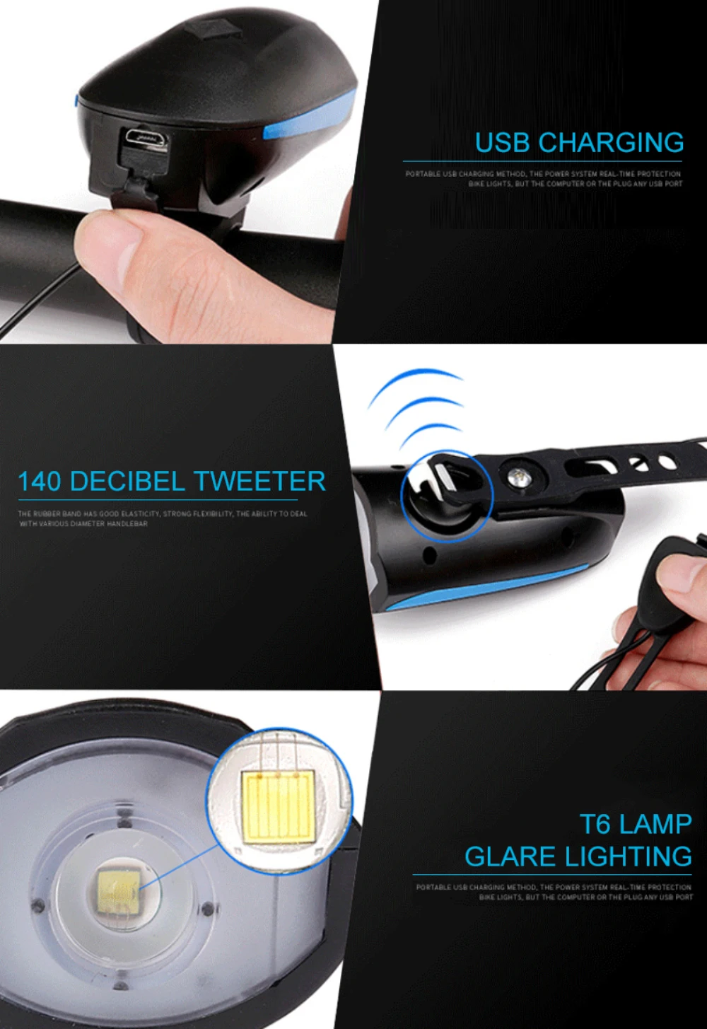 Велосипедная фара с электронным рогом USB перезаряжаемая MTB велосипедная Передняя акустическая лампа Водонепроницаемая MTB велосипедная фара