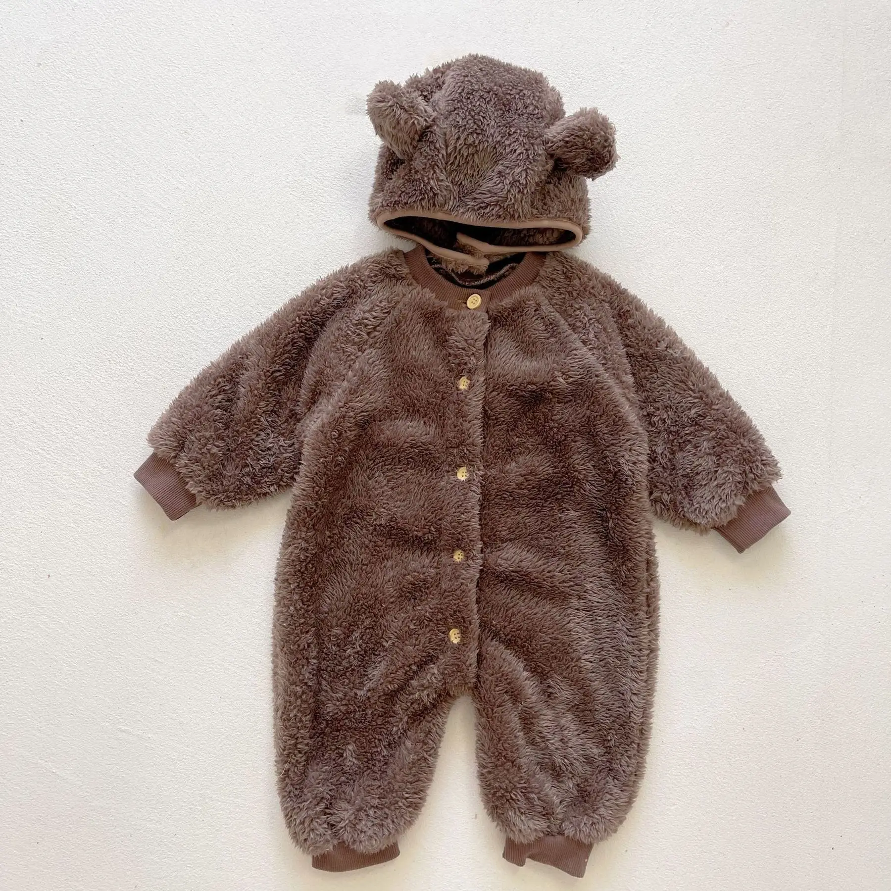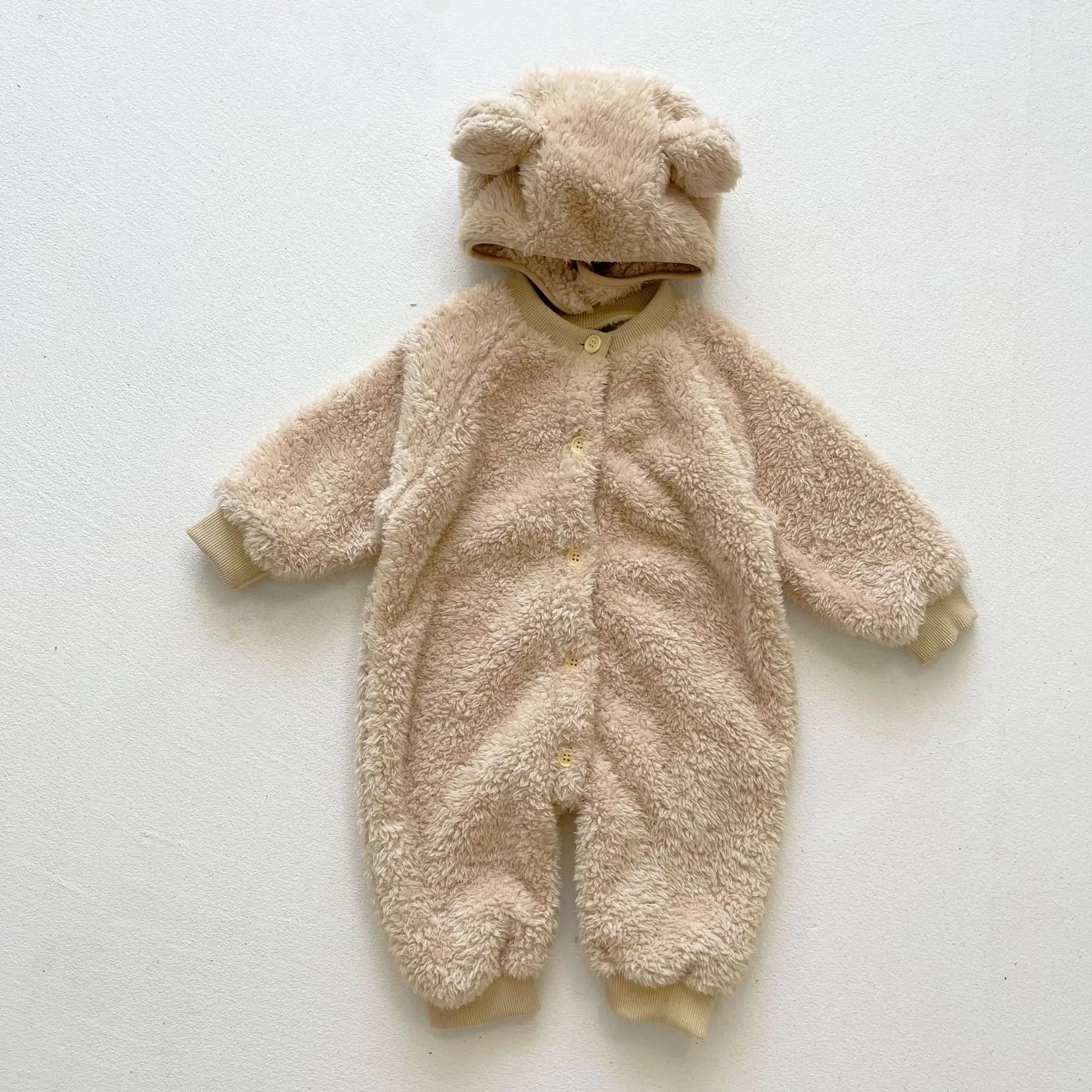 Зимний милый детский комбинезон, Корейская одежда для новорожденных мальчиков и девочек, флисовое боди с длинными рукавами для малышей, толстый теплый комбинезон
