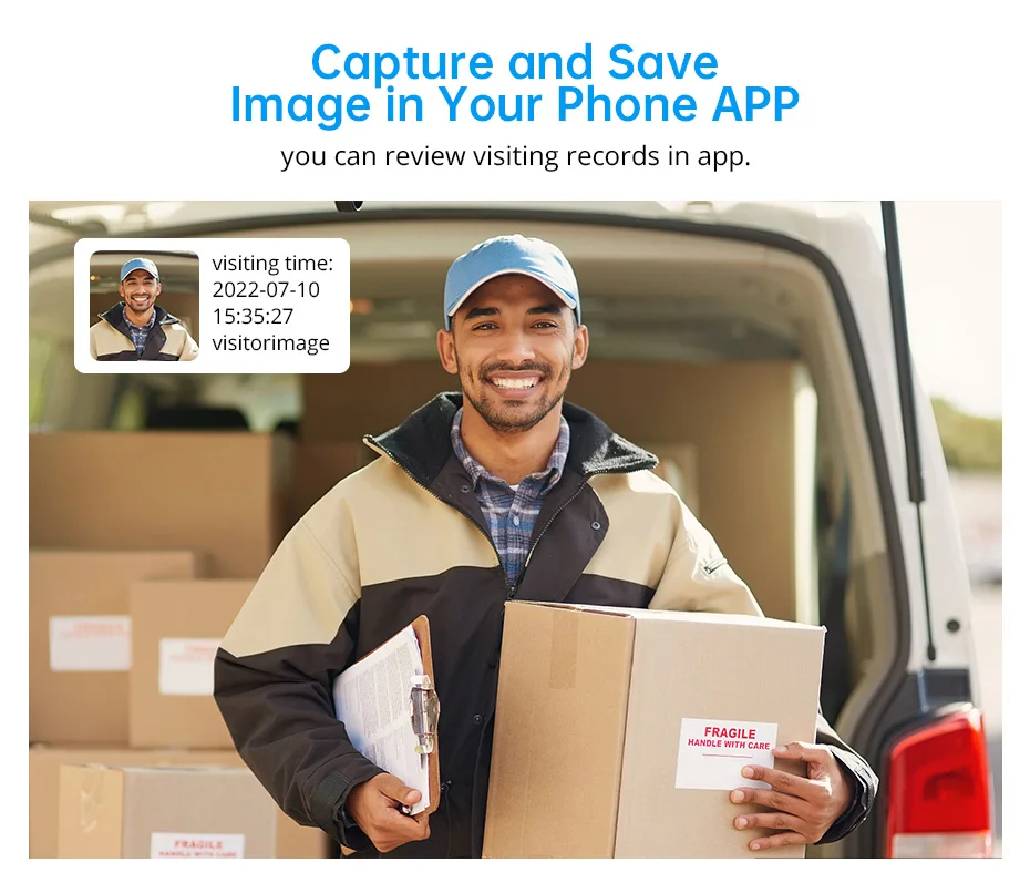 Только когда кто-то нажимает кнопку дверного звонка, дверной звонок будет захватывать картинку, чтобы сохранить в приложении.