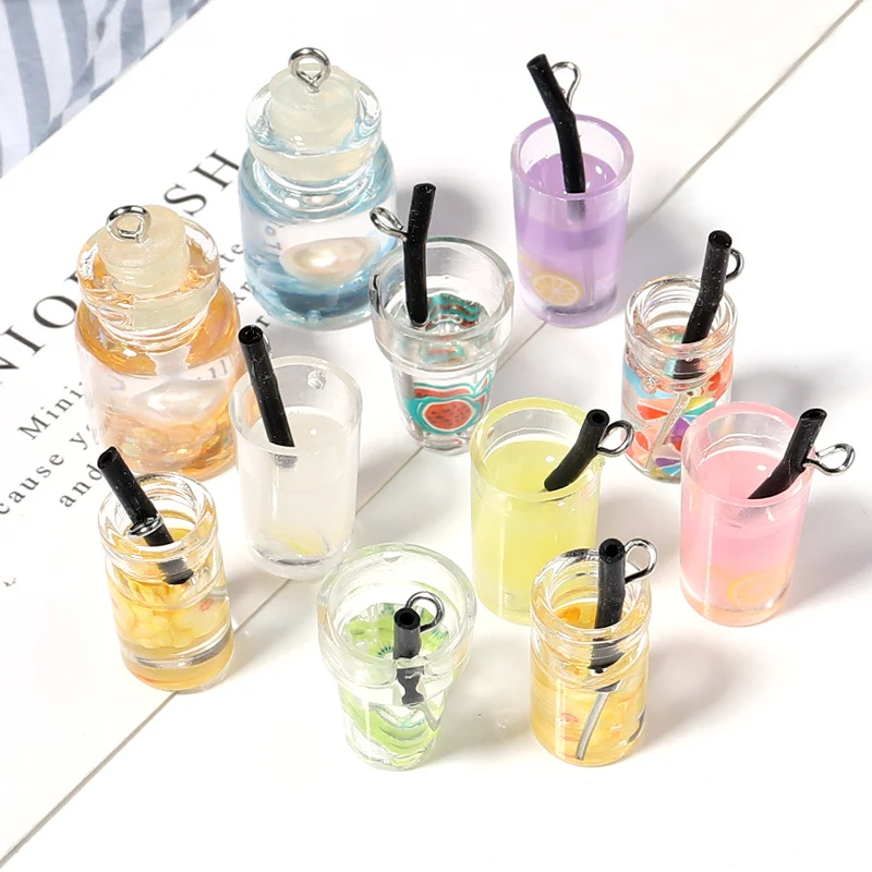 10 шт., акриловое кольцо для ключей, ожерелье, подвеска, аксессуары, случайный смешанный Дрифт, бутылка для напитков, стекло, Коктейльная смесь цветов для изготовления ювелирных изделий