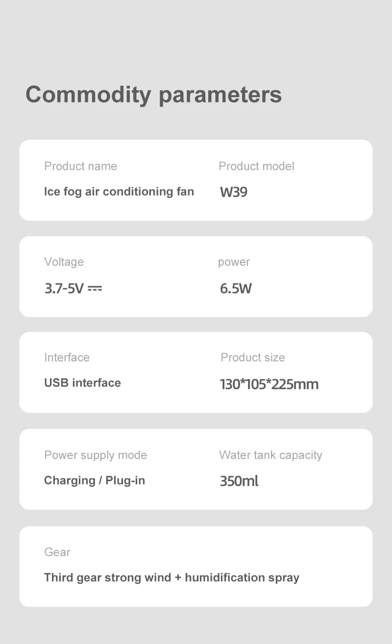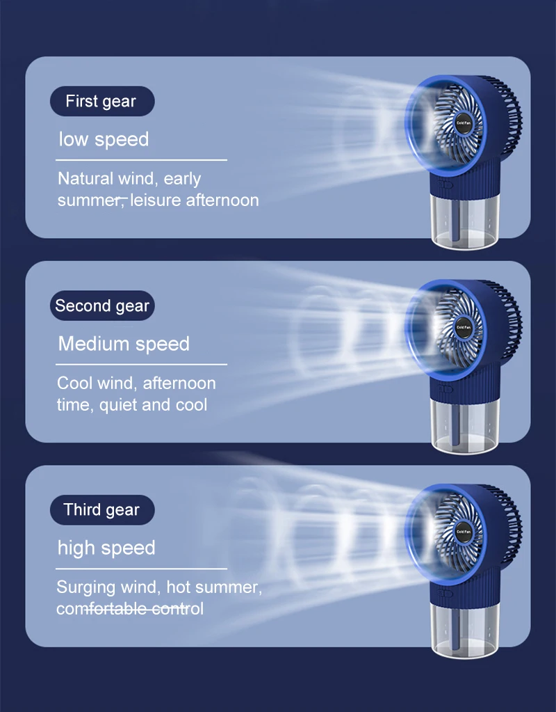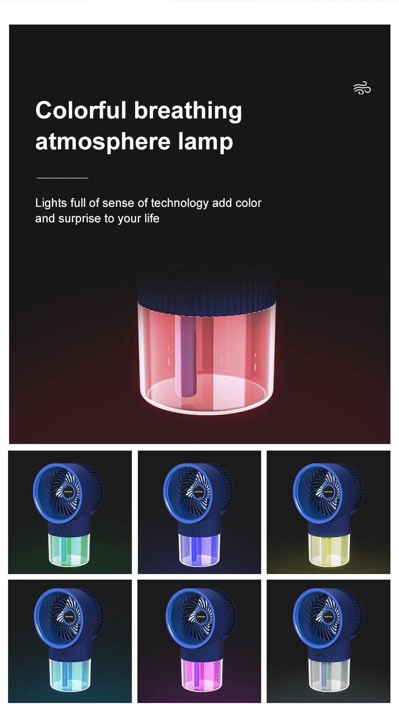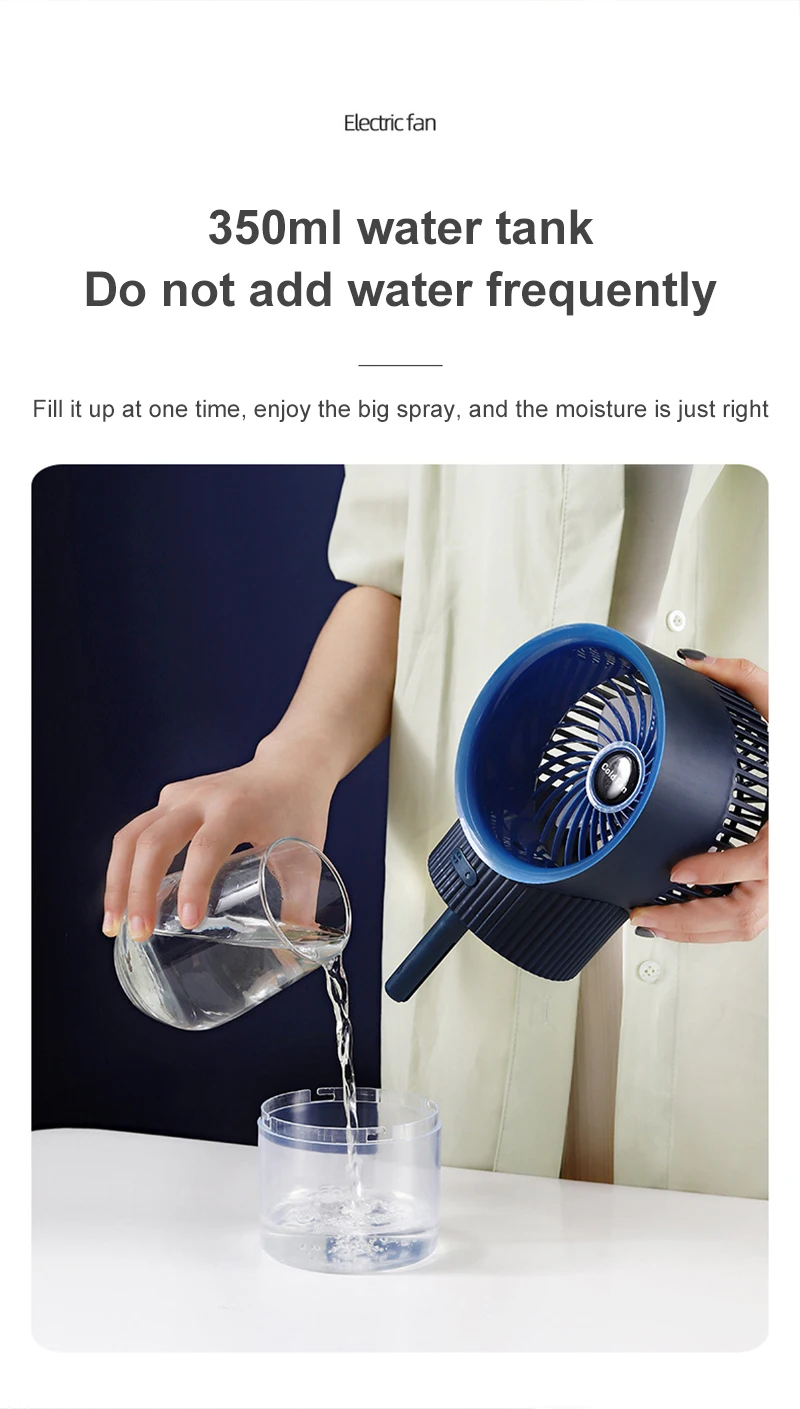 【 2-в-1 Fan】Strong ветра, регулируемая скорость ветра в трех скоростях. Можно использовать в качестве распылителя, 350 мл резервуара для воды, наслаждайтесь прохладой летом.