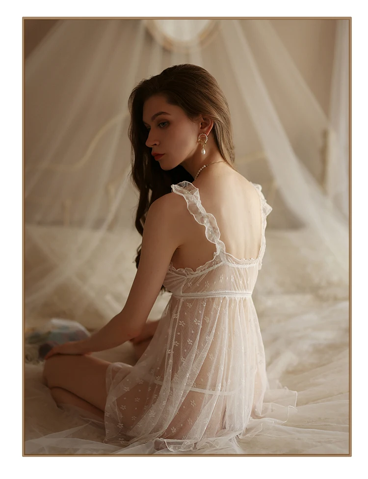 Каваи белье для женщин, ночное белье, сексуальная кружевная перспектива, оборки на подтяжках, ночная рубашка, нарядное французское спальное платье, ночная рубашка в стиле «лолита»