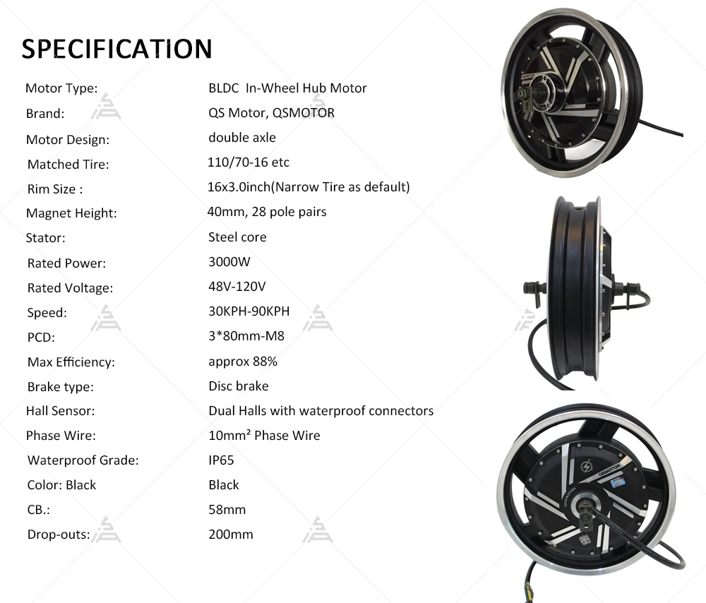 QS 16*3,0 дюймов 3kW 72V-96V 273 V2 BLDC мотор для электрического скутера/мотоцикла