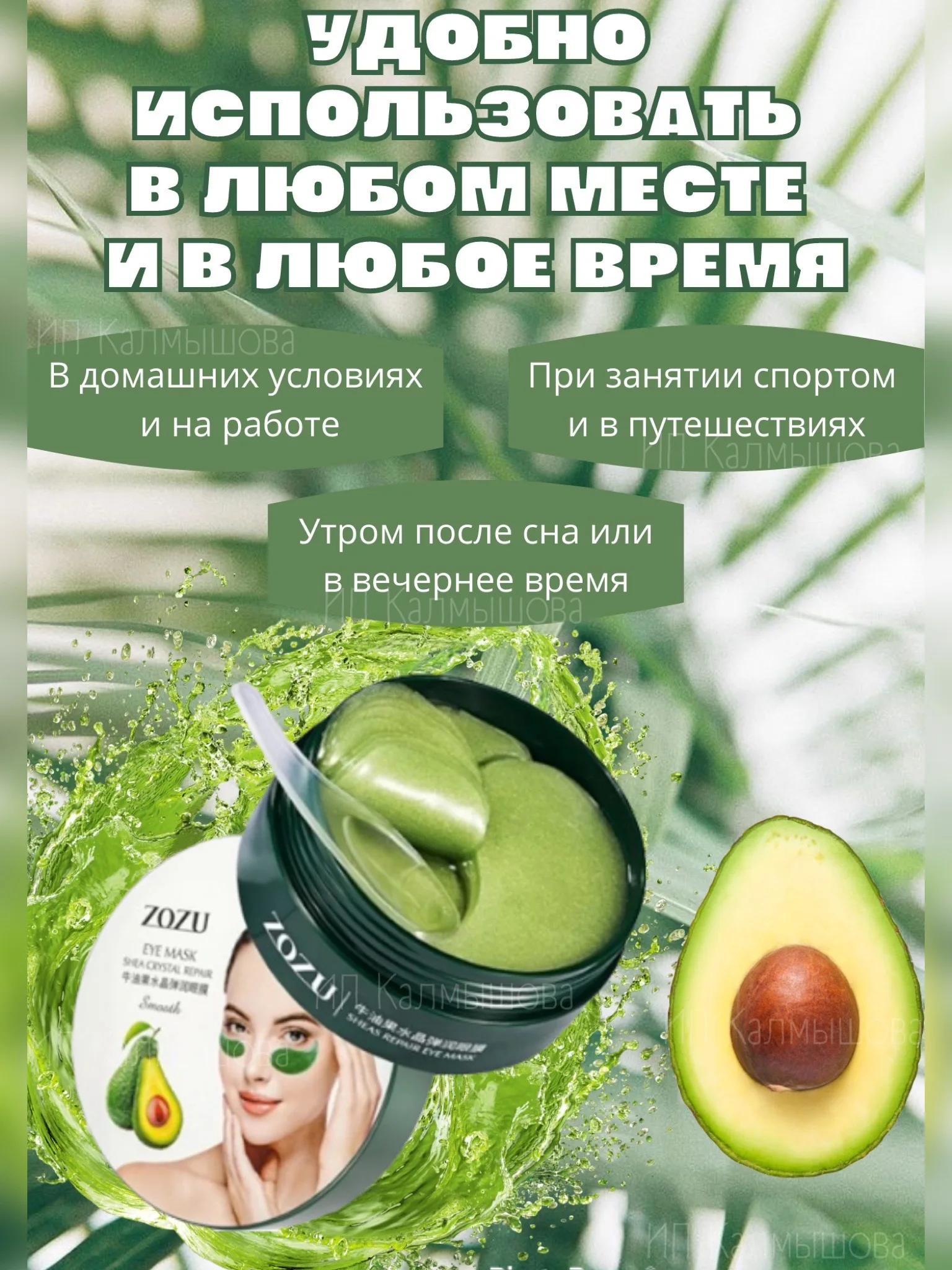 Гидрогелевые патчи для глаз эффективно избавят вас от отеков, кругов и мешков под глазами. Достаточно наложить патчи под глаза на очищенную кожу и всего за 20 минут они избавят вас от отеков и темных кругов вокруг глаз. Гидрогелевые патчи станут средством номер один в процессе борьбы с последствиями недосыпа и стресса. Патчи для глаз оказывают увлажняющее, осветляющее и подтягивающее действие. Они не только возвращают свежесть коже и внешнему виду с утра, но и оказывают омолаживающий эффект, производят увлажнение кожи, снимают отечность вокруг глаз, снимают воспаление и раздражение Патчи повышают тонус и эластичность кожи, ускоряют обновление клеток, активизируют регенерацию кожи, омолаживают и обеспечивают лифтинг-эффект. Формула на растительных компонентах проникает глубоко в кожу, воздействует на микроциркуляцию клеток и убирает отеки.
