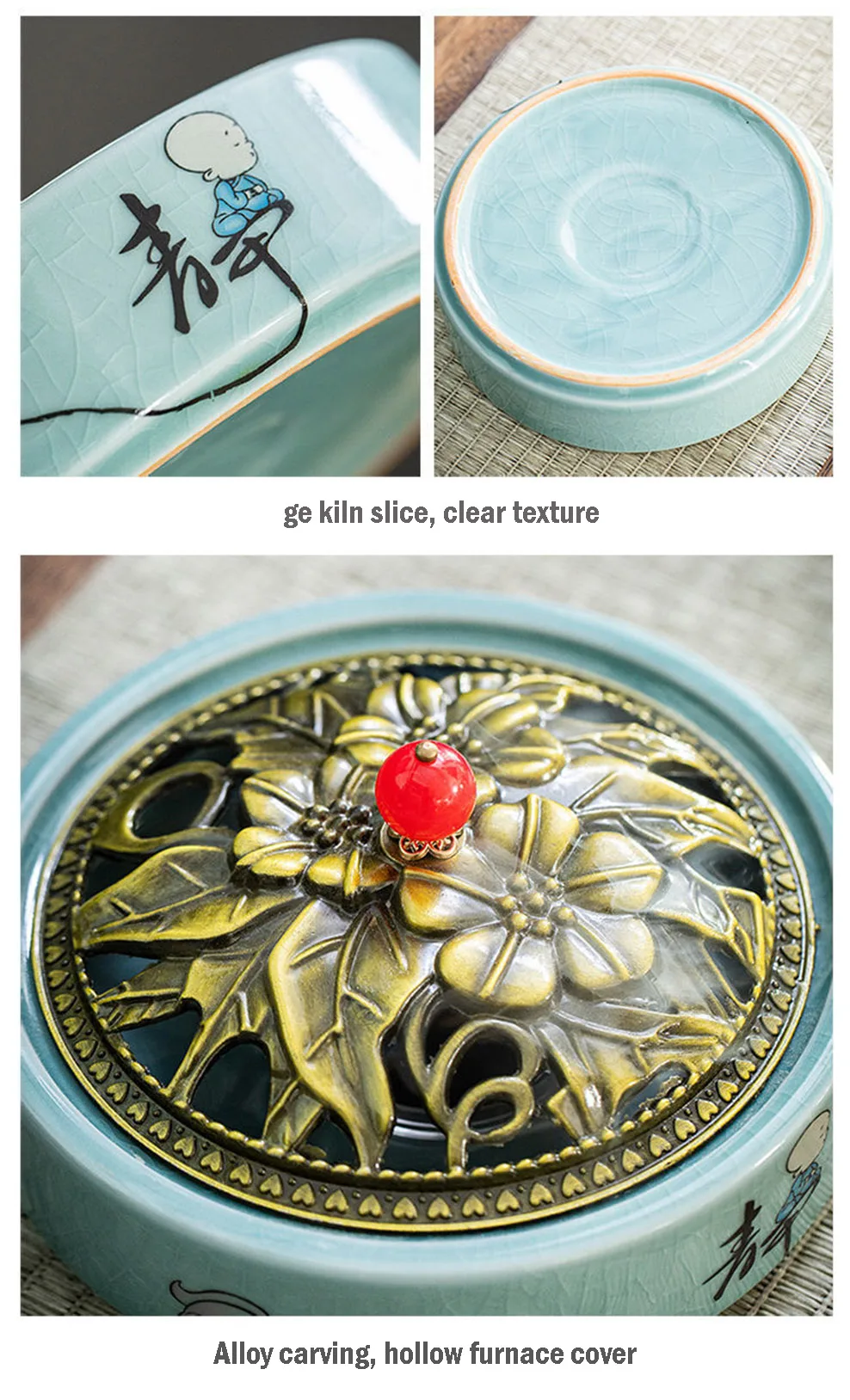 Ceramic Mosquito Coil Box Ge Kiln Coil Incense Burner With Hollow Cover Sandalwood Burner Aromatherapy Furnace Home Decorations