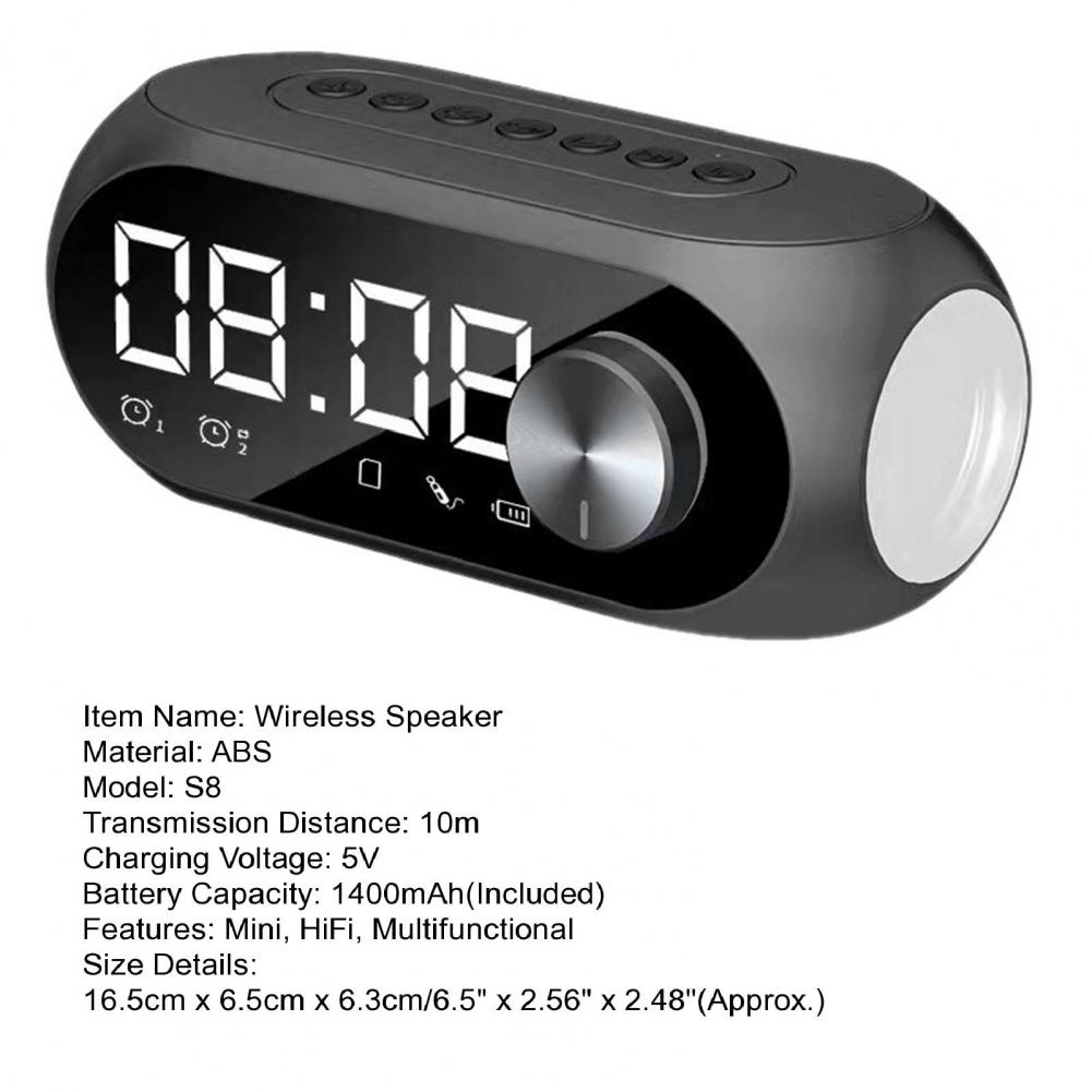 S8 беспроводной динамик Высокая точность Многофункциональный перезаряжаемый Bluetooth-совместимый стерео динамик часы двойной будильник для дома