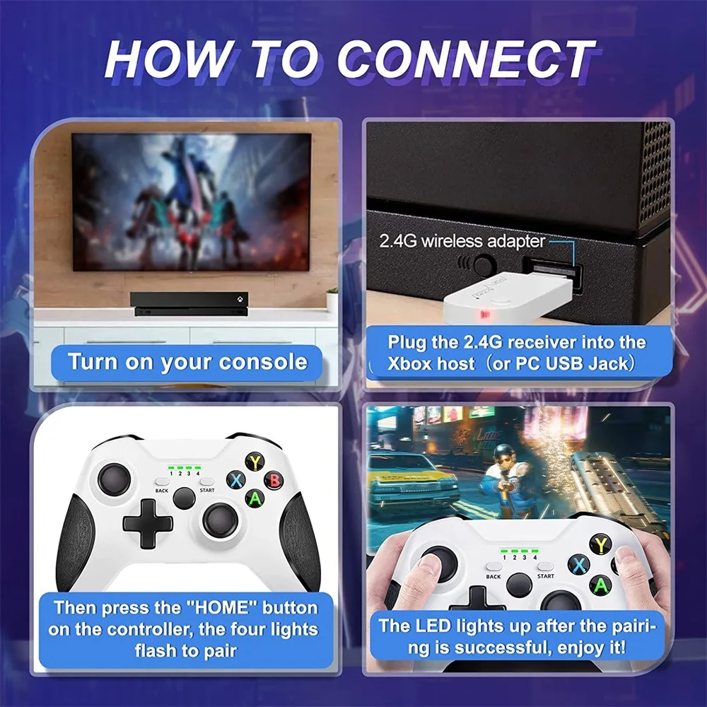 1. Подключите блок питания X-box one host, видеовыход и другие провода. Затем включите выключатель питания хоста, на хосте есть соответствующий индикатор питания, затем подключите usb-разъем к проводной ручке X one к usb-интерфейсу на хосте X one. На рукоятке будет гореть четырехканальный индикатор.