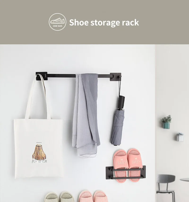 Aluminum Slipper Holder Wall Mounted Shoes Storage Brackets Bathroom Towel Rod Bedroom Shoes Hanging Holder