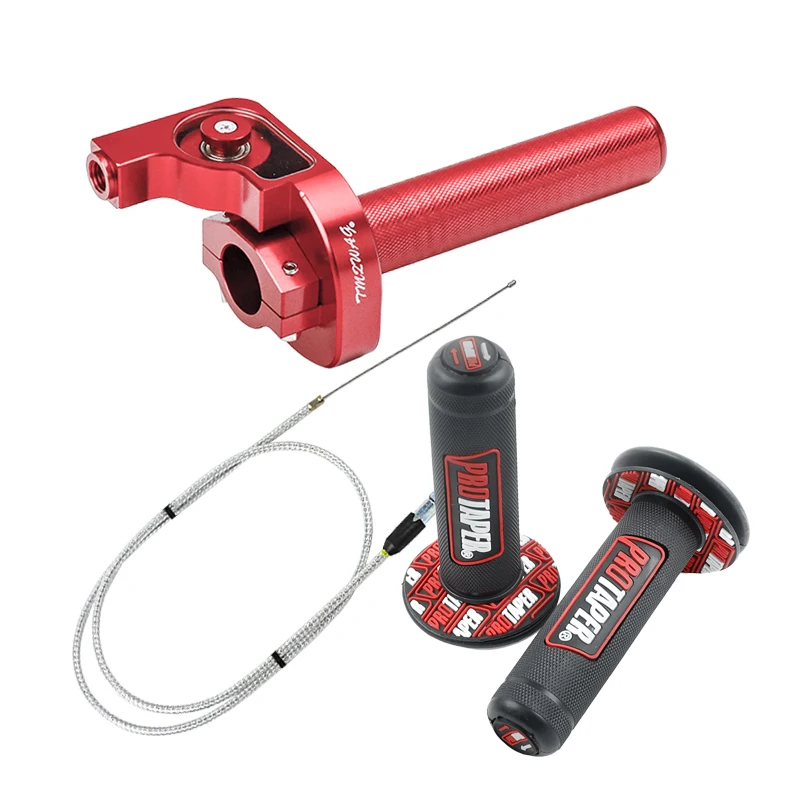 Особенности:Изготовлен из алюминиевого сплава 6061 T-6Анодированный Цвет, острый видПросвечивающий верх, рифленая рукояткаВарианты цвета: красный/синий/золотой/черныйНаправляющая Шарикового подшипника с прозрачной коробкой для дроссельной заслонкиРегулируемые зажимы позволяют установить их с вашими личными предпочтениями.Приспособление:Подходит для всех pit bikes и minis с 7/8 дюймовым приложением.