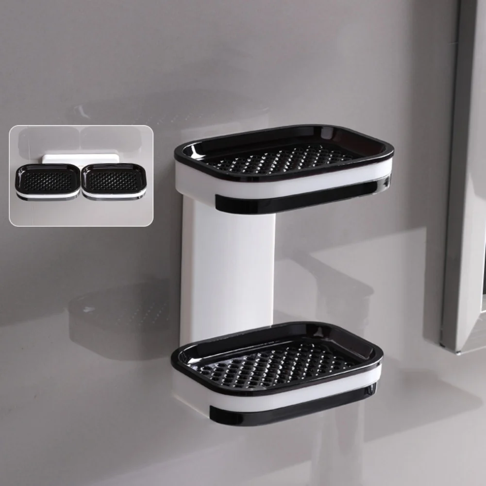 1. Двухслойный дизайн: держатель мыла для ванной комнаты разработан с двухслойными ящиками. Верхний полый дизайн увеличивает функцию дренажа, которая может быстро сливать воду, а нижний лоток хранит воду, чтобы сохранить чистоту и гигиеничность soapbox.