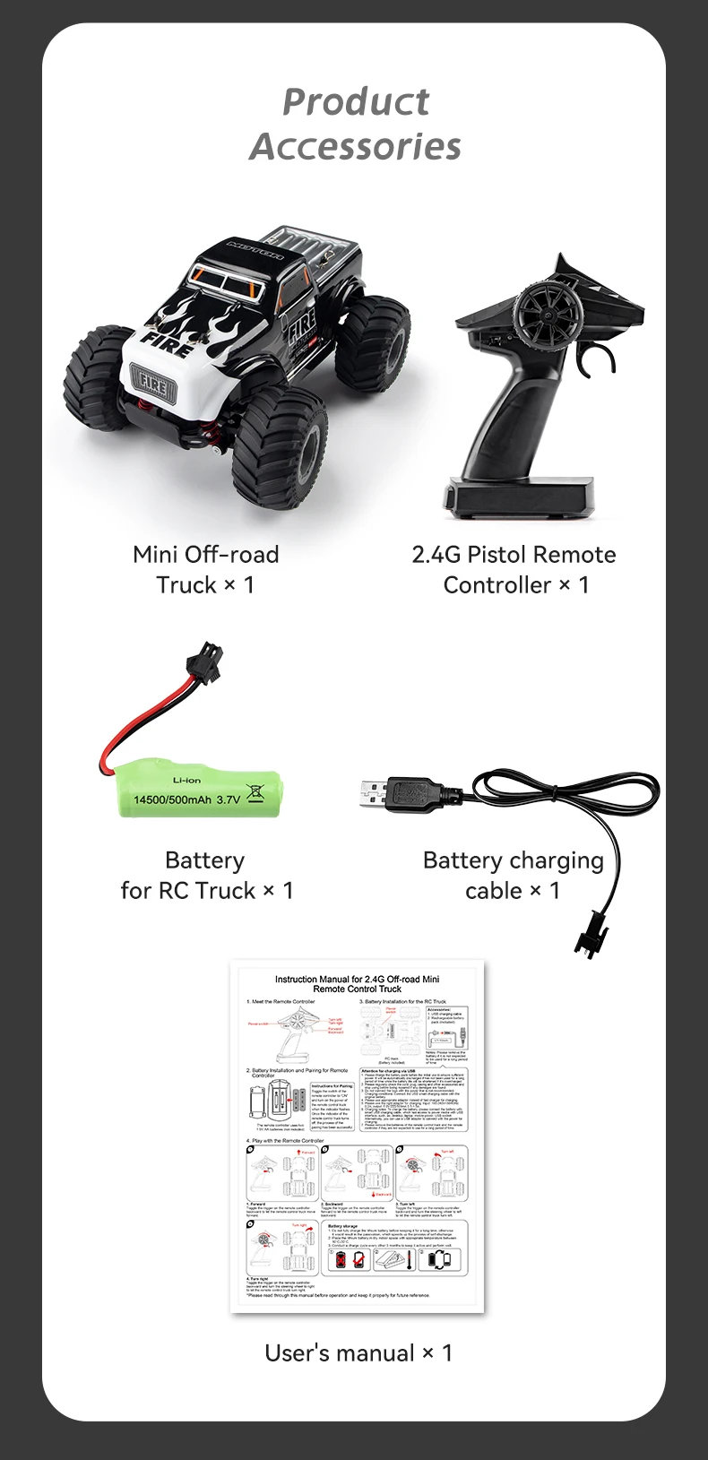 1. 2.4G remote control 4-way, four-wheel drive, can drive forward, backward, turn left, turn right