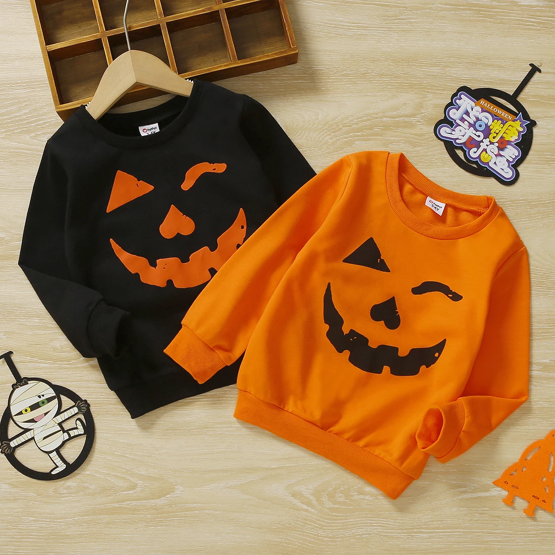 PatPat/костюмы на Хэллоуин для маленьких девочек и мальчиков; Пуловер с принтом тыквы; Свитер; Футболка с длинными рукавами; Одежда на Хэллоуин для детей