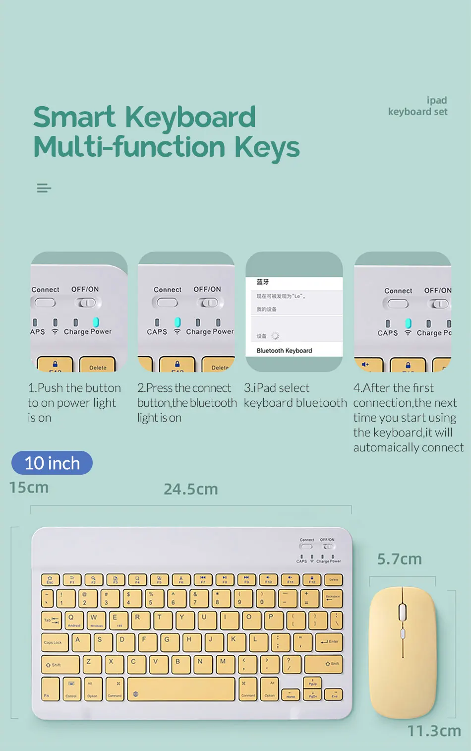 2. Сопряжение по Bluetooth: Нажмите Fn + C (индикатор bluetooth будет мигать);