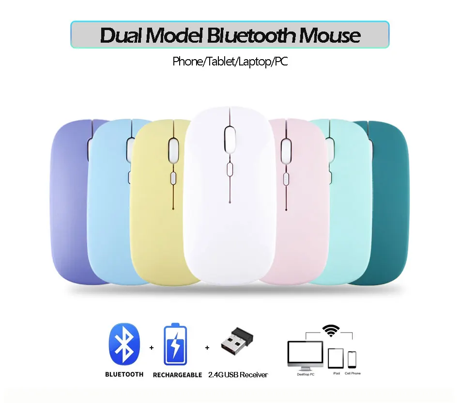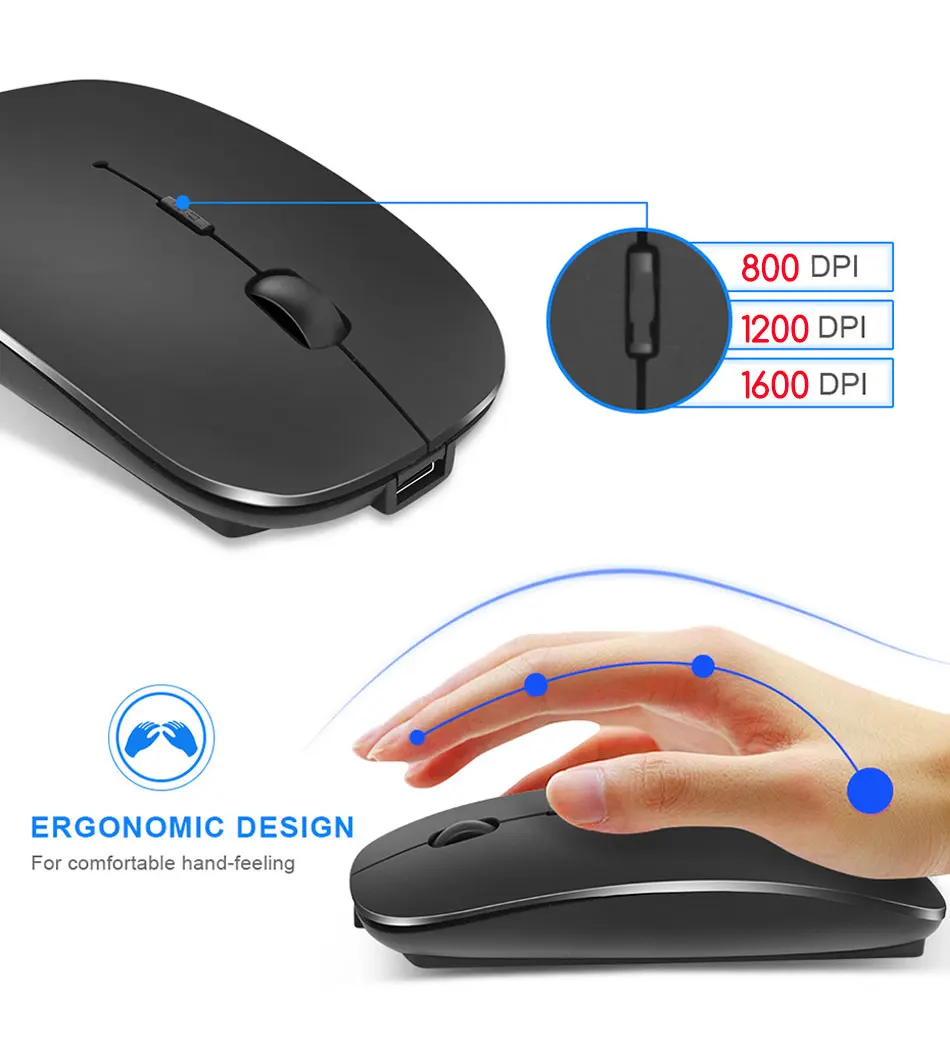 (BT 4,0 + 2,4 GHz): Беспроводная мышь двойного режима реализует Бесплатные переключатели между двумя устройствами с помощью одной мыши только одним щелчком мыши.