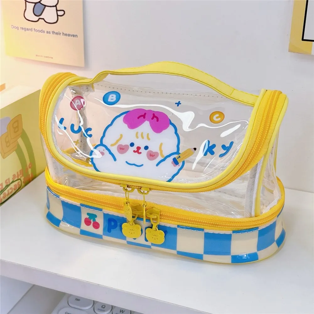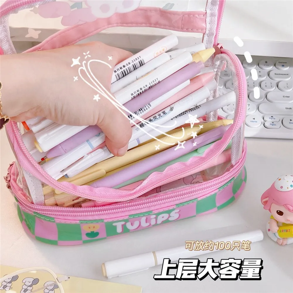 Двухслойный пенал Kawaii Bear, Большой Вместительный школьный стационарный органический чехол Материал: ПВХ Размеры: 21*13*10,5 см