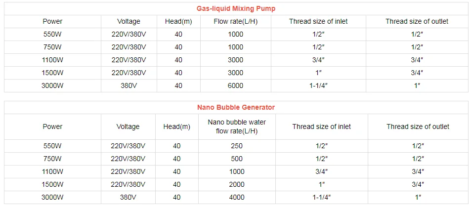 Газовый жидкий Гибридный насос имеет структуру прямого подключения двигателя, структура насоса и производительность могут быть сопоставлены с американскими, европейскими и японскими насосами, насос изготовлен из нержавеющей стали литья.Всасывающий порт насоса для смешивания газа может использовать отрицательное давление для всасывания газа, поэтому нет необходимости использовать воздушный компрессор и атмосферный эжектор.Высокоскоростное рабочее колесо насоса смешивает и сжимает жидкость с газом, поэтому нет необходимости в мешалке или миксере.Из-за смешивания под давлением в насосе газ полностью растворяется с жидкостью и эффективность растворения может достигать более 80%. Таким образом, не требуется больших резервуаров для растворенного газа под давлением или дорогих реакционных башен для производства сильно растворенных жидкостей. Насос для смешивания газа и жидкости привлекает, смешивает, растворяет и доставляет сильно растворенную жидкость непосредственно в точку использования.Таким образом, использование газово-жидкого смешивающего насоса повышает эффективность производства растворенной жидкости, упрощает производственную единицу, экономит пространство, значительно снижает первоначальные инвестиции и экономит затраты на эксплуатацию и техническое обслуживание.Особенности продукта1. Всасывания воды и воздуха в одно и то же время, напорная система смешивания в насосе, микро-мелкие пузырьки до 0,1-20 мкм.2. Высокая эффективность растворения газа и жидкости, стабильная производительность, простота в эксплуатации и обслуживании.3. Устройство для воздушного потока может заменить насос под давлением, воздушный компрессор, инжектор Вентури, резервуар для растворенного воздуха высокого давления, смеситель для воздушной воды и выпускную головку и т. д. Он может решить проблемы нестабильной работы и большого пузырька падения традиционных устройств.4. Устройство для производства озоновой воды может заменить бустерные насосы, Струйные растяжки, большие окислительные башни и т. д. Эффективность растворения газа-жидкости составляет более 80%, что в 2-4 раза выше, чем эффективность смеситель Вентури, значительно снижает инвестиции в оборудование и эксплуатационные расходы.Условия работы