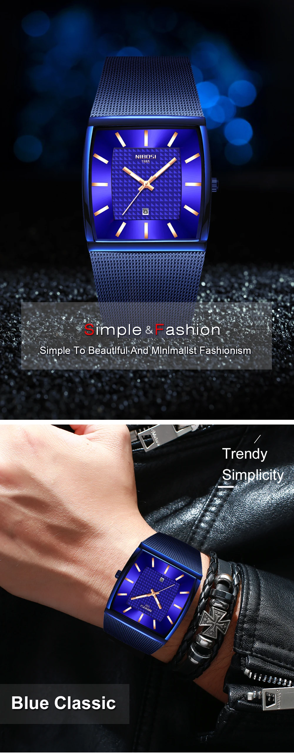 2022 Ультратонкие мужские часы Nibosi с квадратным циферблатом водонепроницаемые мужские наручные часы из нержавеющей стали Relogio Masculino 2023