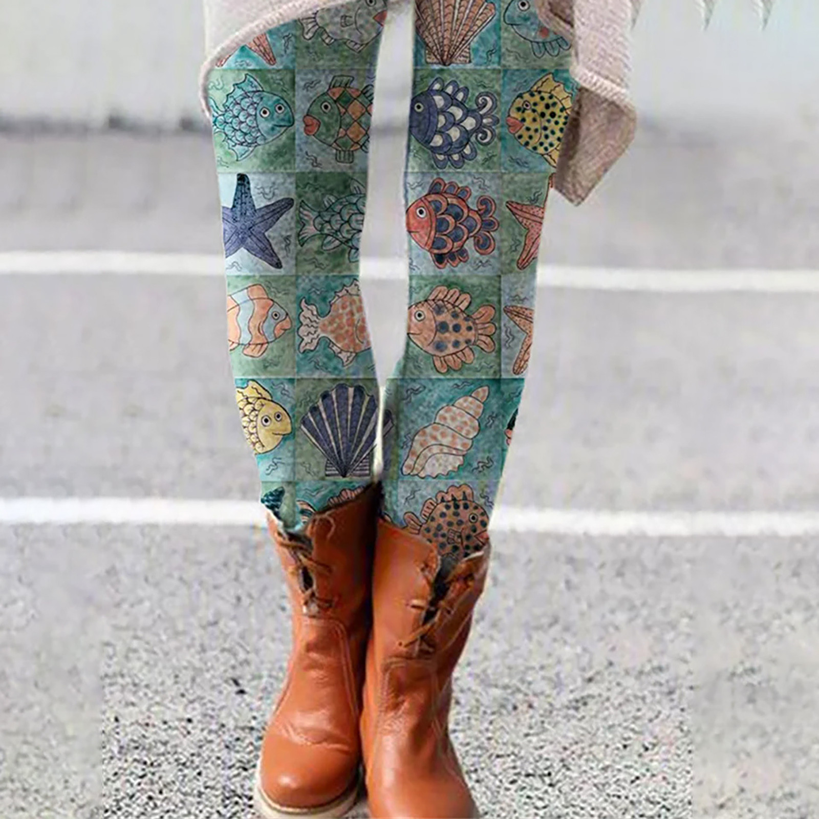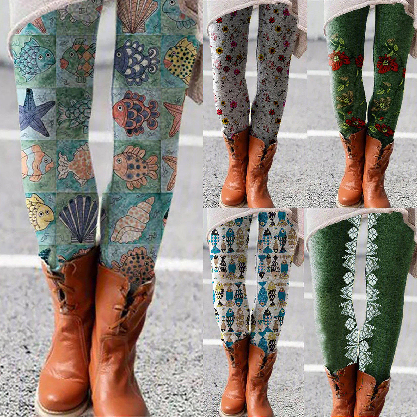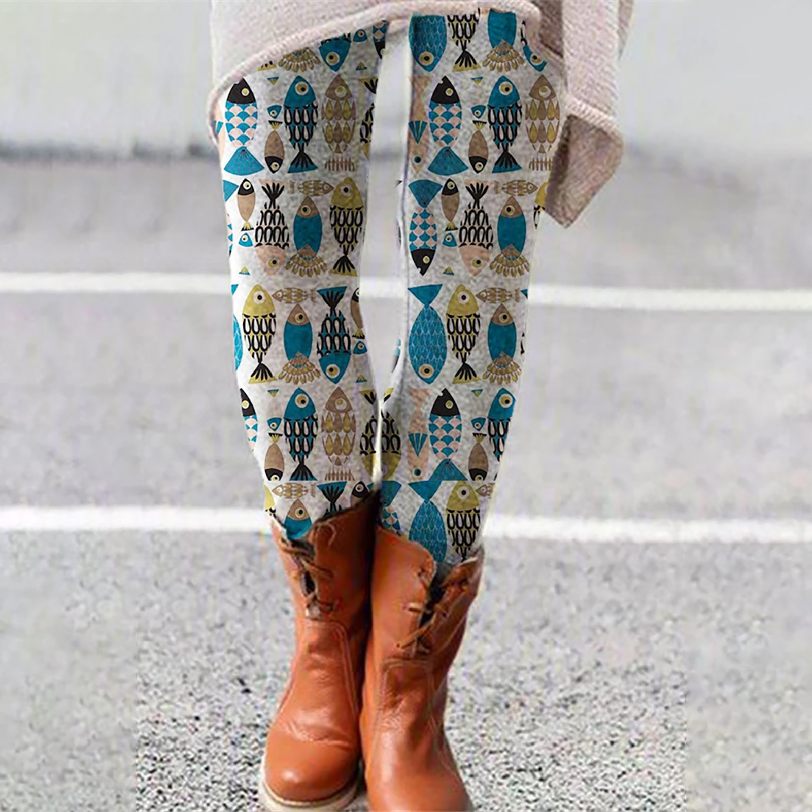 Женские Эластичные универсальные облегающие повседневные длинные штаны-леггинсы с геометрическим принтом