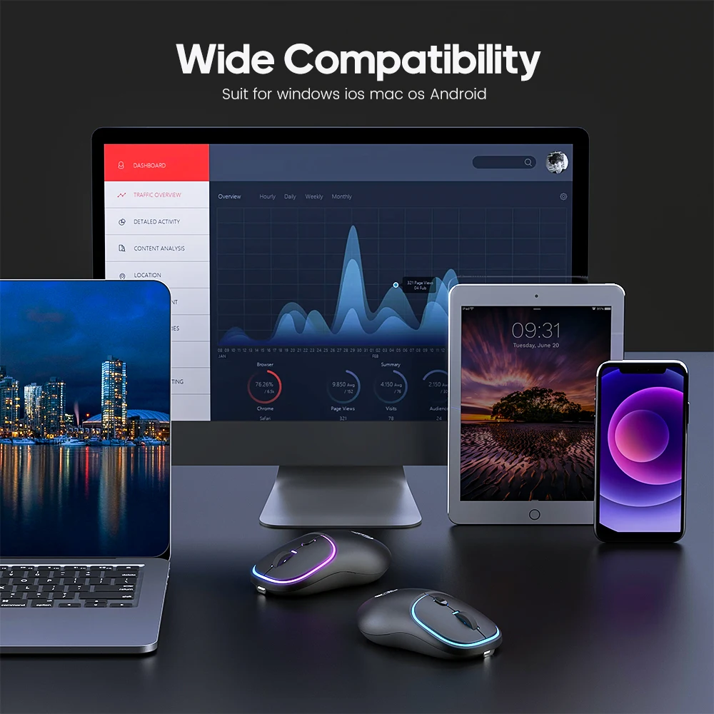 1.【, в наличии 7 цветов светодиодный RGB дыхание Lightweight Если вы устали от обычной мыши, наша беспроводная мышь rainbow может быть выбором для вас. Это супер круто с 7 различными светодиодными радужными лампами, и вы можете легко переключаться между светодиодными цветами, нажав на нижнюю кнопку. Это также идеальный подарок для детей, девочек, мальчиков, студентов или левых, правосторонних пользователей 2. 【Тип C перезаряжаемый беспроводной Mouse】 Эта беспроводная мышь использует перезаряжаемую батарею 650 мАч, и одна Зарядка будет длиться целую неделю. В то время как интеллектуальная функция автоматического сна и переключатель вкл/выкл помогут вам идти дальше между зарядами 3. 【Два рабочих modes】 Мышь имеет два режима работы: Bluetooth и беспроводной, что позволяет идеально адаптироваться к различным поводам. Он совместим с настольными компьютерами Chromebook и Windows 10, 8, 7, Vista, Mac OS/Linus и другими системами.