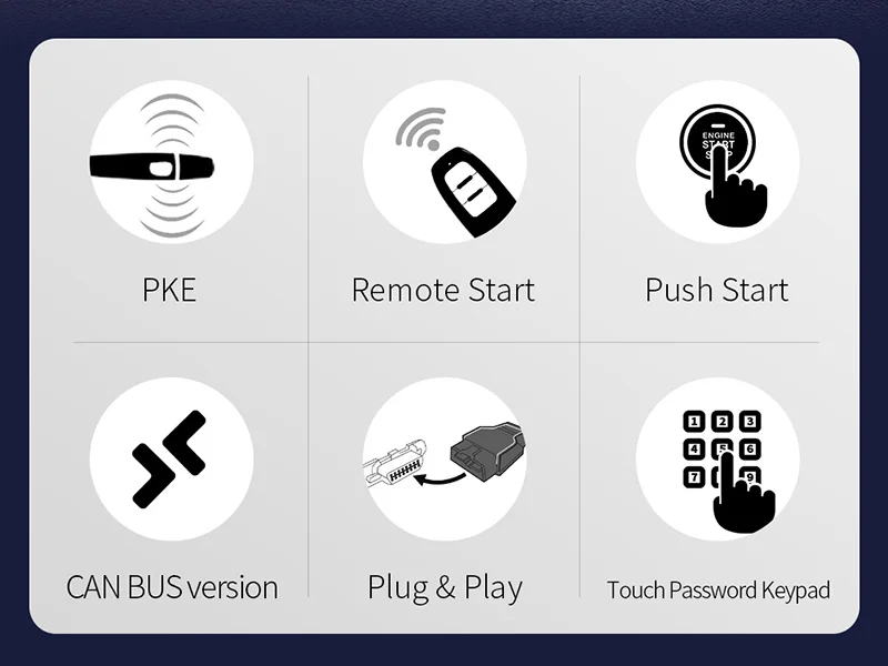 3. Обновите ваш ключ запуска автомобиля, чтобы нажать start buton с PKE-Пассивный бесключевой вход, кнопка пуска, удаленный запуск двигателя и сенсорная функция ввода паролей.