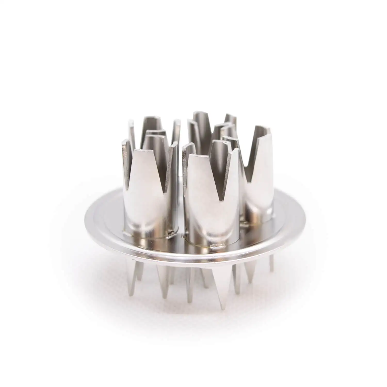 Диаметр тарелки — 51 ммТолщина металла — 1 ммНаружный ⌀ трубок — 12 ммВнутренний ⌀ трубок — 9,5 ммВысота от верхней части распределителя от пластины до точек слива — 10 ммВысота от верхней части распределителя от пластины до точек слива — 10 ммОбщая высота верхней части — 20 мм20 точек орошенияМежду тарелкой и трубками допустимы минимальные зазоры, они не влияют на работу распределителя.Распределитель устанавливается острыми краями вниз, в кламповое соединение 2 дюйма, над или под прокладку.