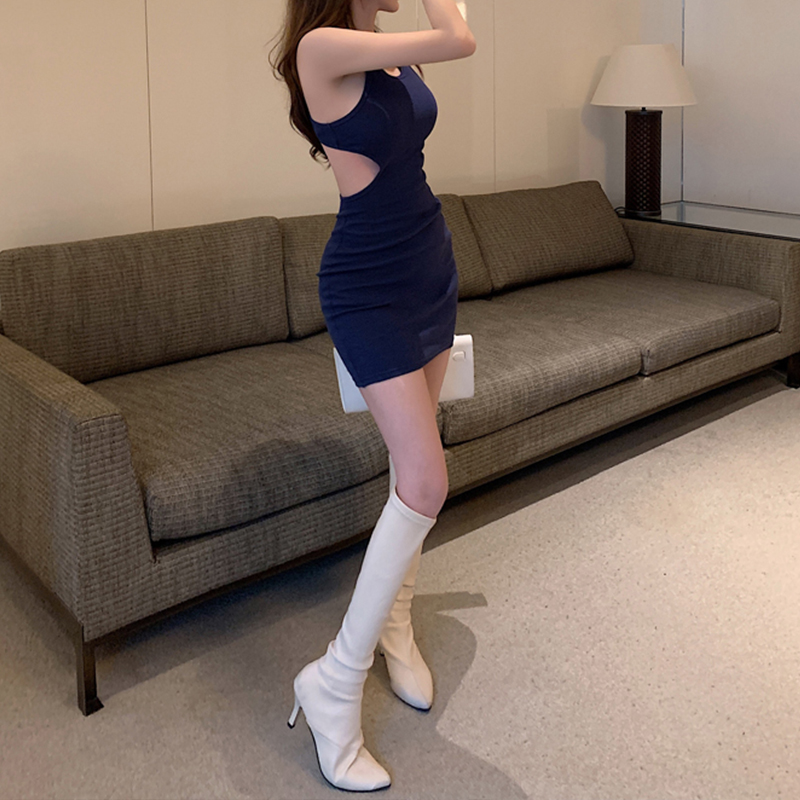 Женское облегающее мини-платье, сексуальное однотонное платье без рукавов с вырезом на спине