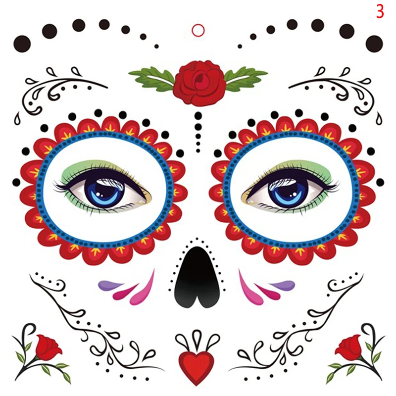 Временные женские татуировки, художественные наклейки для макияжа, водонепроницаемые вечерние украшения мексиканского черепа для лица, переносные сексуальные тату