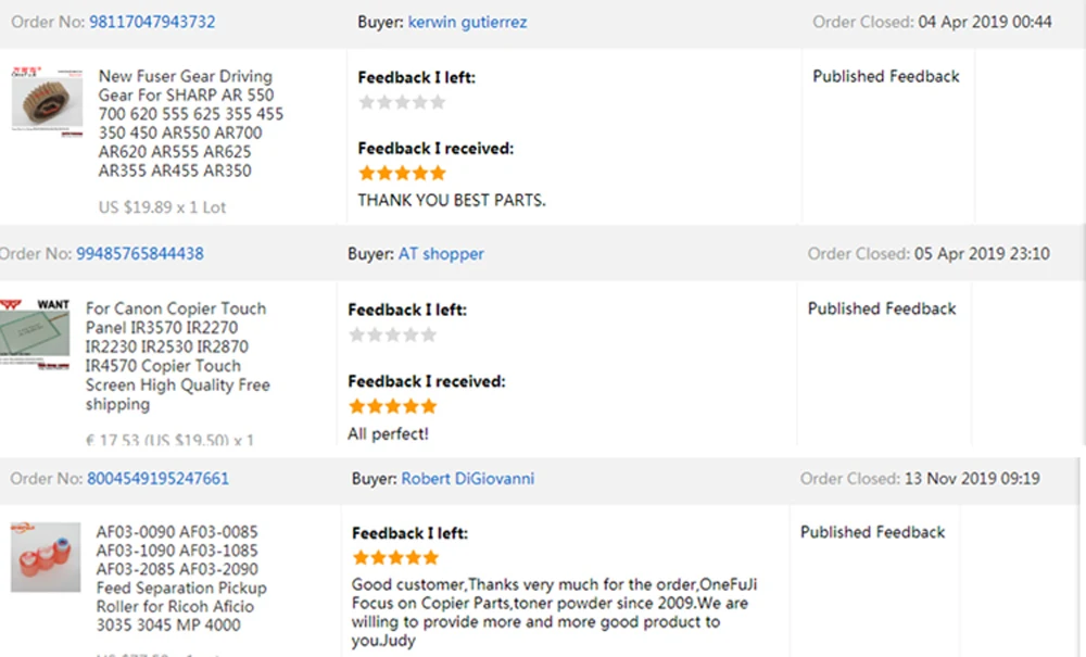 OneFuJi was focus on Copier Parts since 2009.The product include the Upper Fuser Roller,Lower Fuser Roller,Pickup Roller,Pickup Tire,OPC Drum,Fuser film,Cleaning Web Roller,Copier Gear,Touch Screen,ETC.More details,please check our website:www.cnwant.com or contact our expert