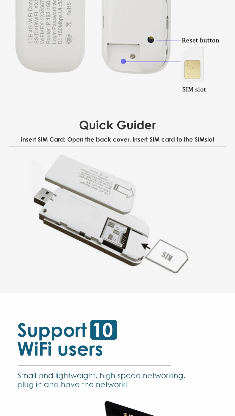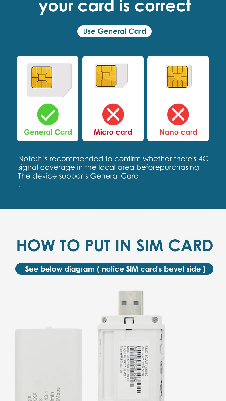 1. Your 4G router/modem only supports the general ordinary SIM card. For some lock -up SIM cards, the operator does not allow the contract SIM card to use on the WiFi router, or only allow it to be used on its authorized device. This product may not work. (If your SIM card cannot access the Internet, please do not panic. Usually, you will change the universal SIM card of another operator, then it will play a role. Or you can contact us for help.)