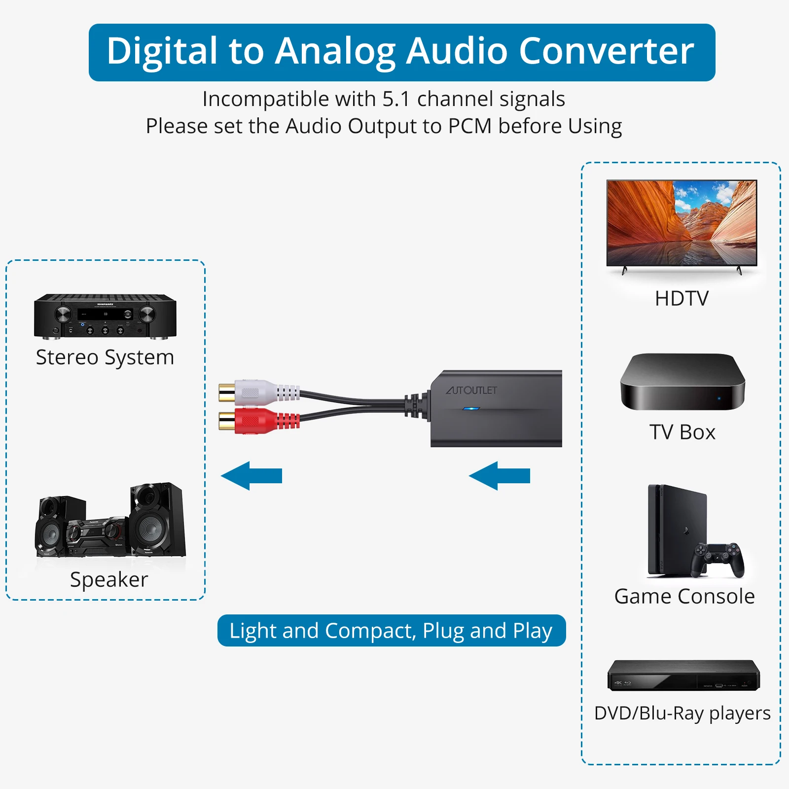 ЦАП 192 кГц предназначен для профессиональной обработки аудиосигнала. Он может легко преобразовать оптический интерфейс SPDIF в аналоговый аудиоинтерфейс RCA для стереоусилителя.