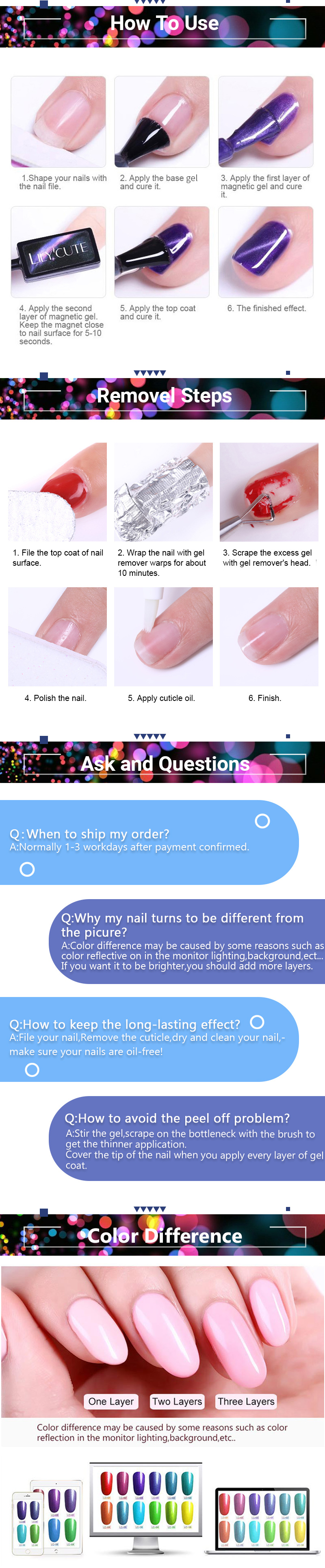 Длительный срок службы не менее 2-3 недель, фантастические и супер яркие ногти для вас.