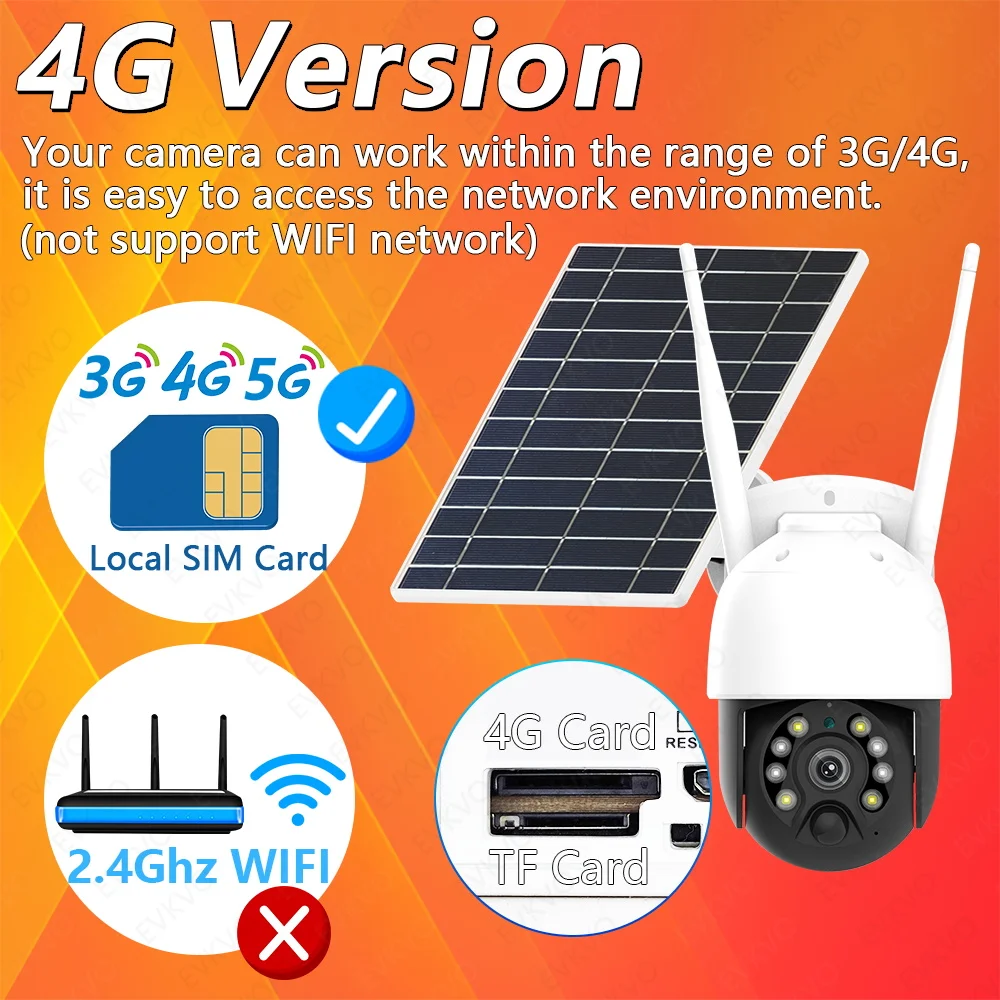 1. Наша камера использует только sim-карту 4G и не поддерживает подключение к 3G / GSM / home WiFi. Не требуется сетевой кабель LAN! Нет необходимости устанавливать wifi! Нет необходимости подключать бытовые провода и кабели!