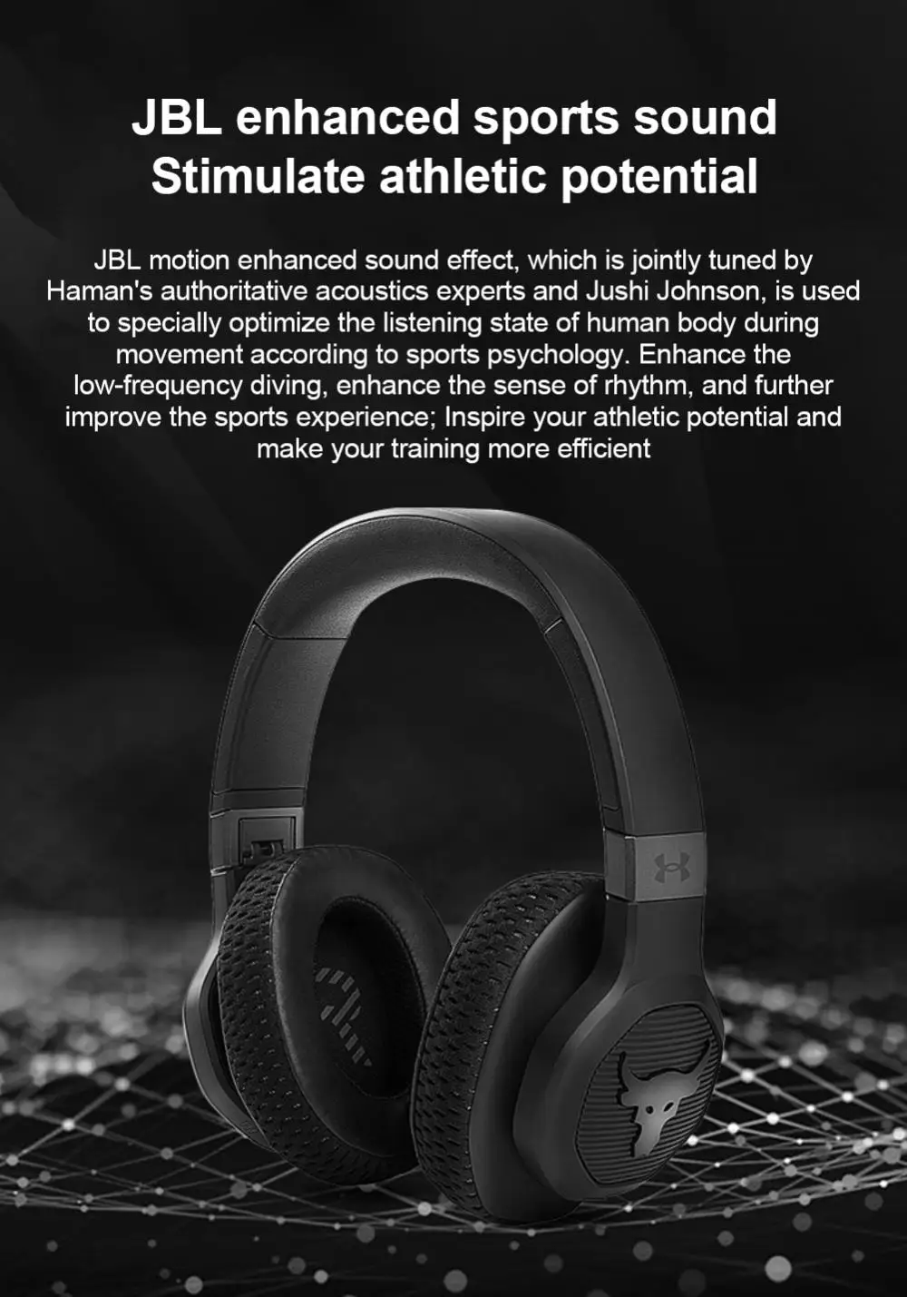 1. Звуковые эффекты JBL motion-enhanced, совместно настроенные авторитетными акустическими экспертами Harman И Дуэйн Джонсон, используются для оптимизации слухового состояния человеческого тела во время физических упражнений в соответствии со спортивной психологией.