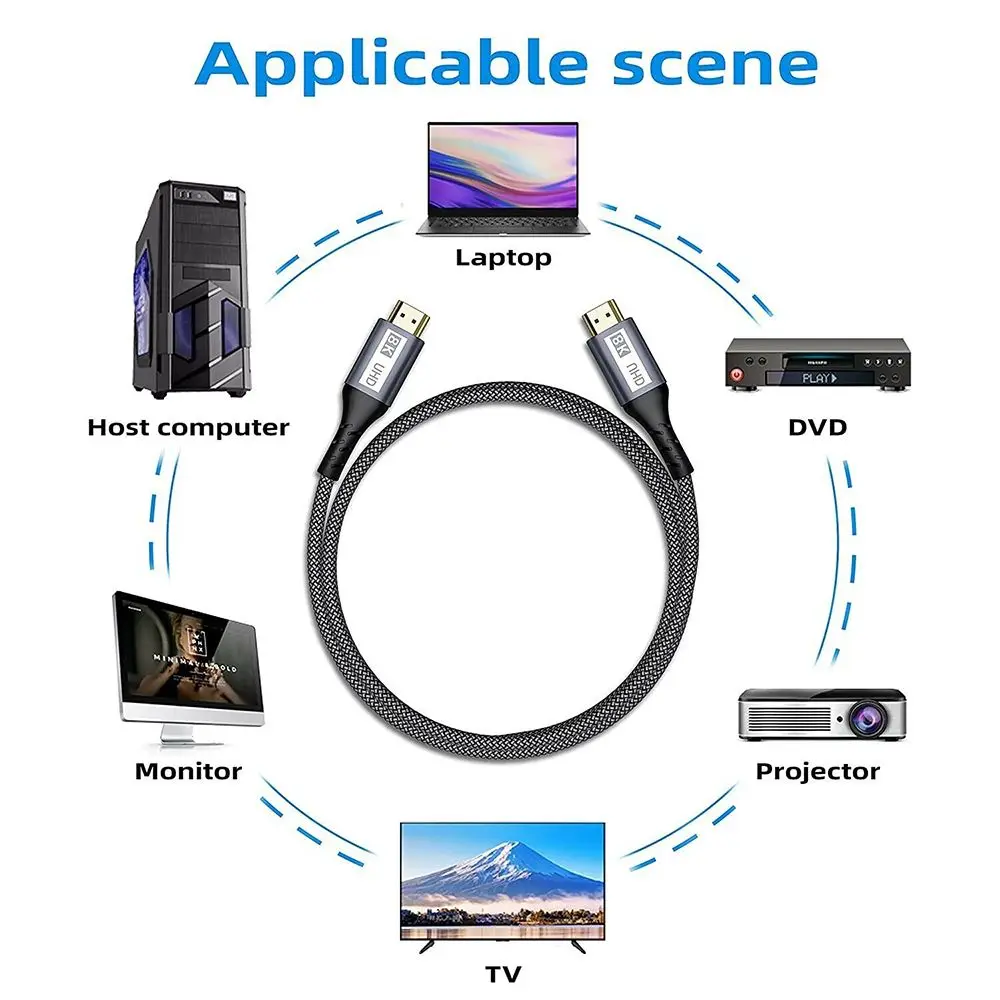 Название: Кабель HDMI 2,1 Материал: медь Разрешение: 7680*4320/4K/2K Частота обновления: 8K/60HZ 4K/120HZ Длина: 1 м, 2 м, 3 м, 4 м, 5 м 1. Последний стандарт HDMI 2,1 кабель этот HDMI2.1 кабель является последней спецификацией HDMI. Поддержка 8k @ 60Hz, 4k @ 120Hz, Yurnero Высокоскоростной HDMI кабель может быстро подключить различные HDMI устройства, он сочетает аудио и видео в одном удобном кабеле, И точно обрабатывает каждый источник сигнала. Он имеет уникальный динамический цвет HDR. Благодаря высокоскоростному кабелю HDMI 2,1 вы можете наслаждаться самой красивой картинкой и отличным воспроизведением. 2. До 48 Гбит/с bandwidthHDMI 2,1 кабель поддерживает пропускную способность до 48 Гбит/с и обратно совместим с более ранними версиями: HDMI 2.0b / 2.0a/2,0/1,4/1,3/1,2/1,1. Поддержка нескольких разрешений, включая 5K и 10K. Экономьте свое время (Примечание: Убедитесь, что ваше устройство поддерживает 8K). 3. Представителем высокого качества этот кабель имеет оболочкой из ПВХ и нейлон хлопковой оплетке кабель, который отличается прочностью и wear-resistant.After тестирования, он может быть согнута более 10000 раз без разрыва. Позолоченные коррозионно-стойкие разъемы (от мужчин до мужчин) могут обеспечить идеальную передачу сигнала и уменьшить искажение контактных точек для удовлетворения ваших требований высокого качества. 4. Этот кабель HDMI-HDMI широко совместим с мультимедийными устройствами, подключает Blu-ray плееры, PS4, PS3, XBox one, Xbox 360, игровые консоли, компьютеры и другие устройства с поддержкой HDMI к телевизору, мониторы, мониторы или Проекционные приборы. Он очень подходит для дома или офиса или игр. Посылка включает: 1 х HDMI кабель
