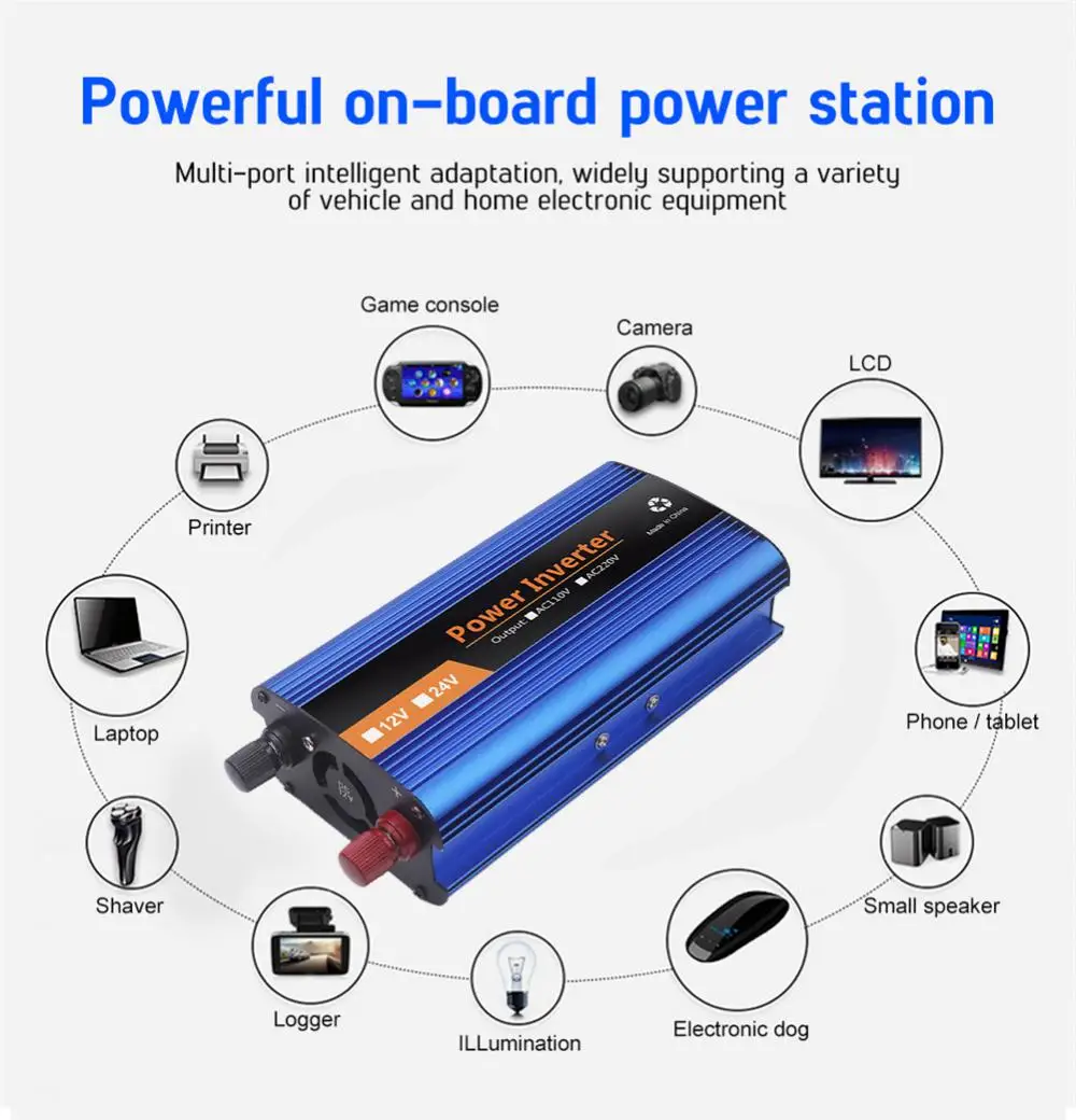 Наш модифицированный синусоидальный инвертор подходит для оборудования: электрических вентиляторов, освещения пикника, ноутбуков, молокоотсосов, атомайзеров, бритвы, медицинского спасательного оборудования, смартфонов, ноутбуков, планшетов, gps-устройств, ТЕЛЕВИЗОРЫ, зарядные устройства, dvd-плееры, MP3-плееры, оборудование для кемпинга и мобильное Офисное оборудование (Подсказка: Убедитесь, что общая номинальная мощность подключенного оборудования ≤ непрерывная мощность инвертора)