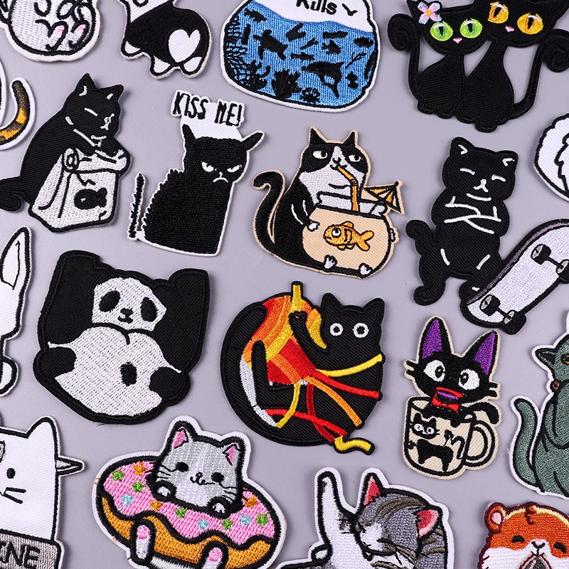 Нашивка с вышивкой в виде кота, нашивка с изображением животных, утюжок на нашивках для одежды, термоклейкие нашивки на одежде, забавная наклейка для кошки, значок